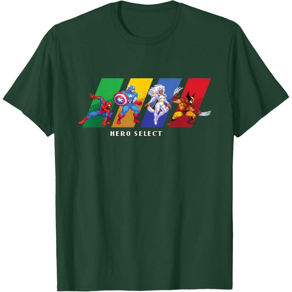 Join the heroes of the Marvel Universe in MARVEL Cosmic Invasion, an all-new, arcade-style, co-op beat-'em-up video game starring a dream roster of Marvel super heroes and villains in a battle from New York City to the Negative Zone against Annihilus and his destructive Annihilation Wave! This full-color official Marvel tee or hoodie features the Hero Select screen, with retro pixel art graphics of Spider-Man, Captain America, and Storm and Wolverine of the X-Men. A great gift for a Marvel fan, and perfect for a comic convention or superhero themed party! Get multiples and wear matching Marvel t-shirts with friends and family on your epic trip or vacation to Avengers Campus at Disney California Adventure Park, Disneyland, or Walt Disney World. Available in youth and adult sizes. Find it in a t-shirt, premium t-shirt, tank top, v-neck, long sleeve tee, hoodie, and sweatshirt.
