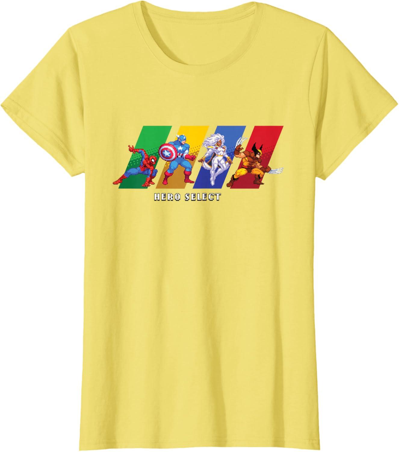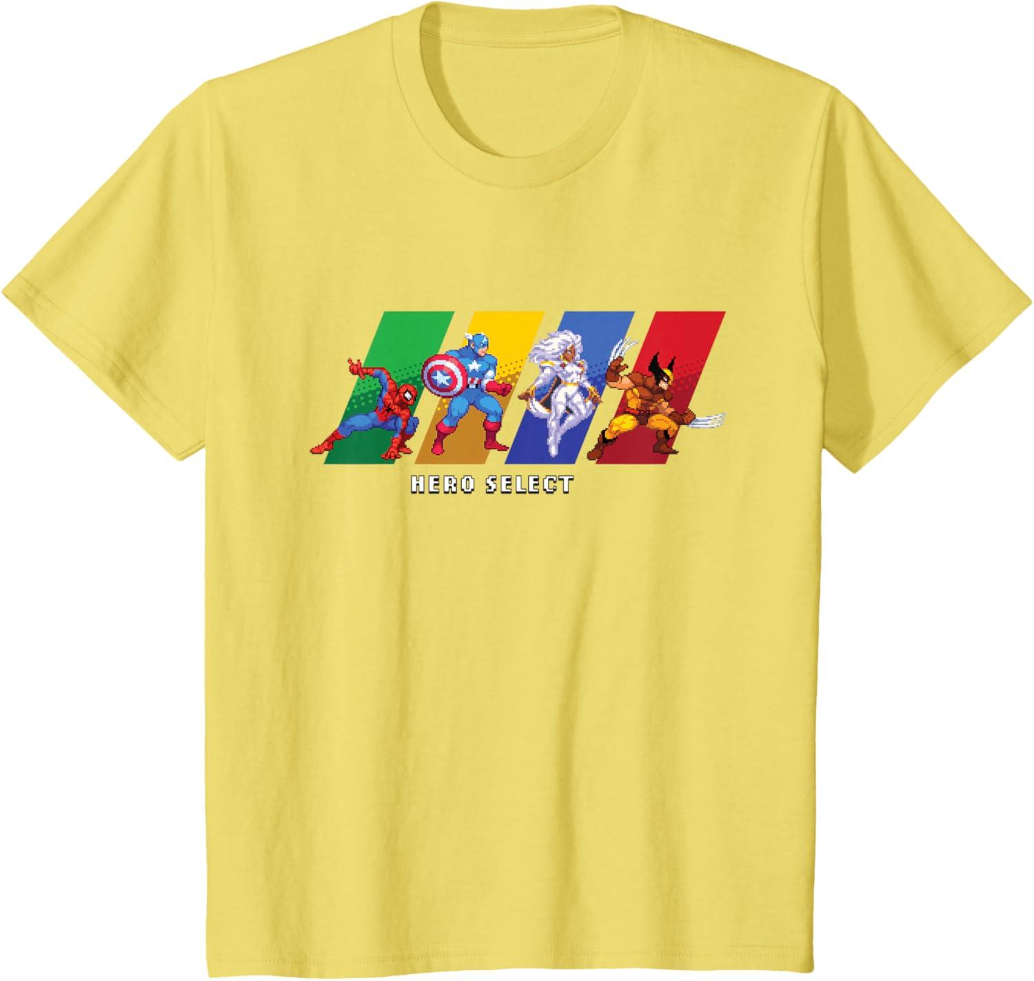 Join the heroes of the Marvel Universe in MARVEL Cosmic Invasion, an all-new, arcade-style, co-op beat-'em-up video game starring a dream roster of Marvel super heroes and villains in a battle from New York City to the Negative Zone against Annihilus and his destructive Annihilation Wave! This full-color official Marvel tee or hoodie features the Hero Select screen, with retro pixel art graphics of Spider-Man, Captain America, and Storm and Wolverine of the X-Men. A great gift for a Marvel fan, and perfect for a comic convention or superhero themed party! Get multiples and wear matching Marvel t-shirts with friends and family on your epic trip or vacation to Avengers Campus at Disney California Adventure Park, Disneyland, or Walt Disney World. Available in youth and adult sizes. Find it in a t-shirt, premium t-shirt, tank top, v-neck, long sleeve tee, hoodie, and sweatshirt.
