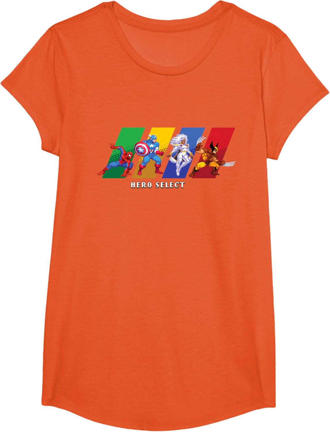 Marvel Cosmic Invasion Game Super Hero Select Screen Retro T-Shirt(Orange)