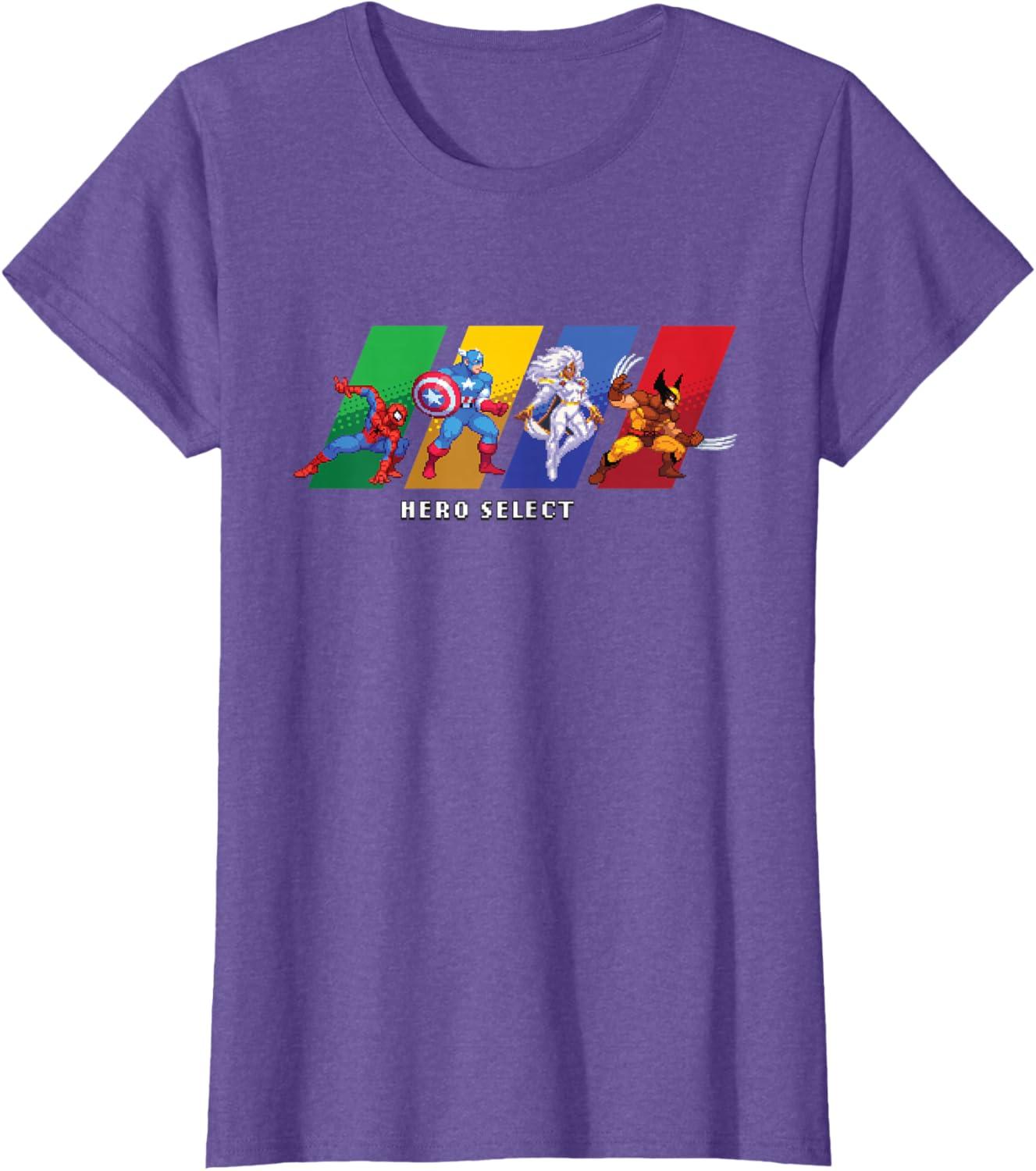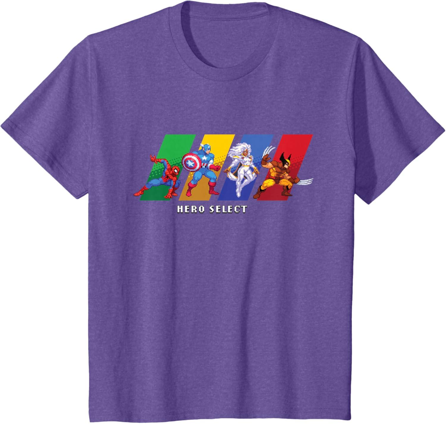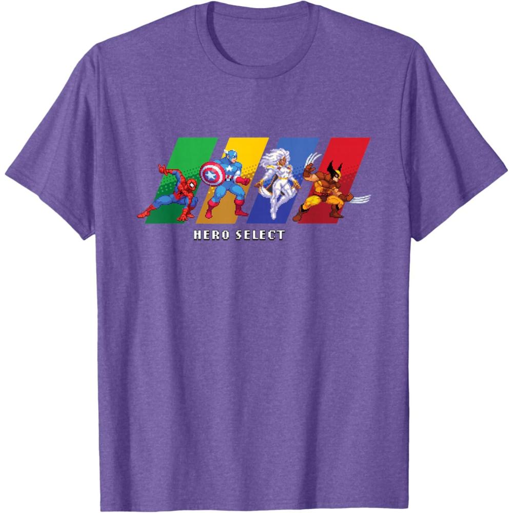 Join the heroes of the Marvel Universe in MARVEL Cosmic Invasion, an all-new, arcade-style, co-op beat-'em-up video game starring a dream roster of Marvel super heroes and villains in a battle from New York City to the Negative Zone against Annihilus and his destructive Annihilation Wave! This full-color official Marvel tee or hoodie features the Hero Select screen, with retro pixel art graphics of Spider-Man, Captain America, and Storm and Wolverine of the X-Men. A great gift for a Marvel fan, and perfect for a comic convention or superhero themed party! Get multiples and wear matching Marvel t-shirts with friends and family on your epic trip or vacation to Avengers Campus at Disney California Adventure Park, Disneyland, or Walt Disney World. Available in youth and adult sizes. Find it in a t-shirt, premium t-shirt, tank top, v-neck, long sleeve tee, hoodie, and sweatshirt.