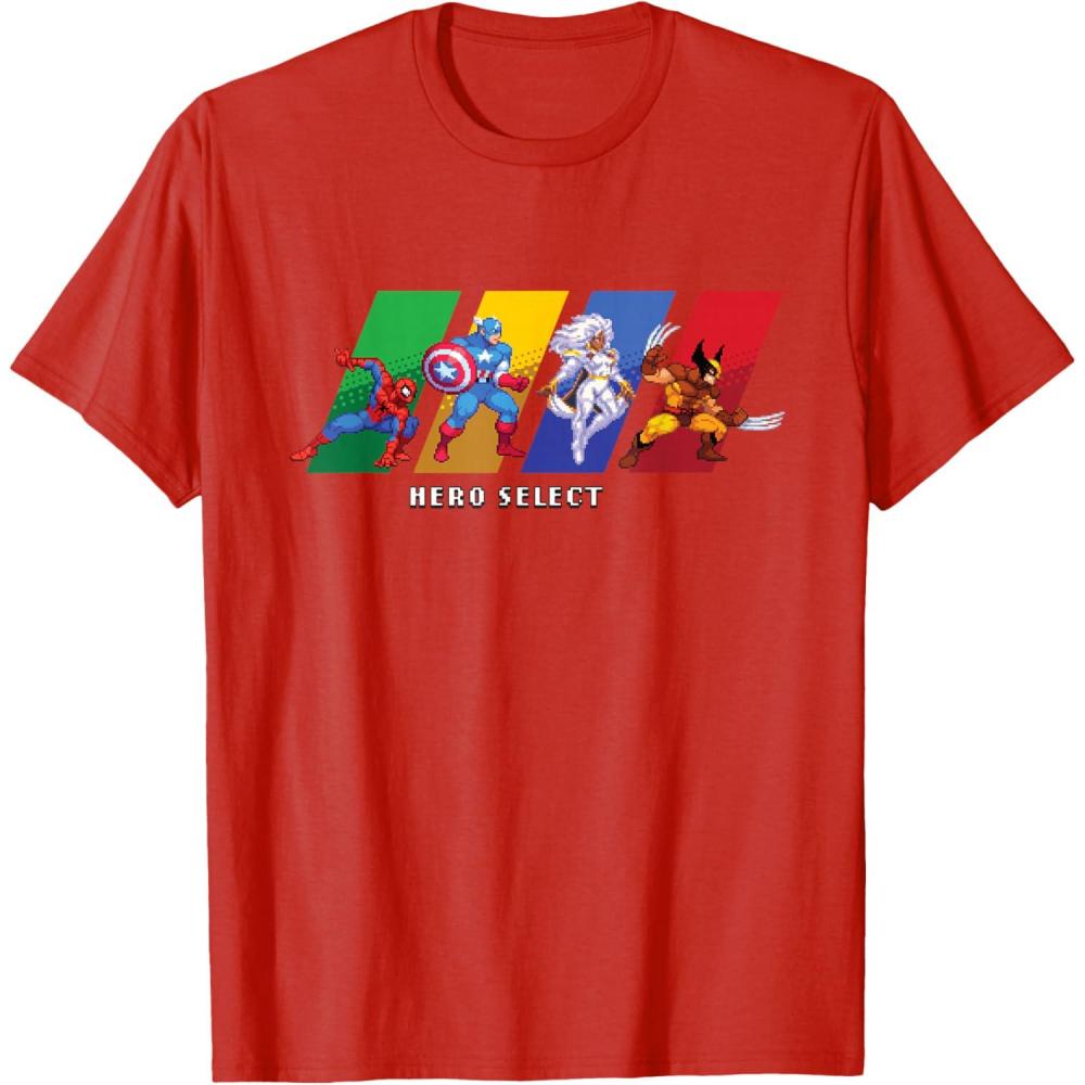 Marvel Cosmic Invasion Game Super Hero Select Screen Retro T-Shirt(Red)