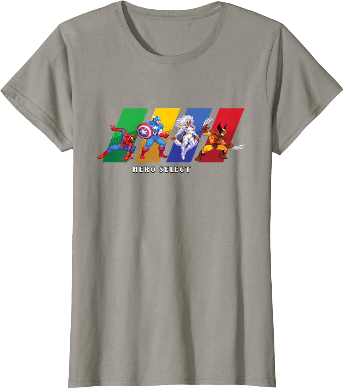 Join the heroes of the Marvel Universe in MARVEL Cosmic Invasion, an all-new, arcade-style, co-op beat-'em-up video game starring a dream roster of Marvel super heroes and villains in a battle from New York City to the Negative Zone against Annihilus and his destructive Annihilation Wave! This full-color official Marvel tee or hoodie features the Hero Select screen, with retro pixel art graphics of Spider-Man, Captain America, and Storm and Wolverine of the X-Men. A great gift for a Marvel fan, and perfect for a comic convention or superhero themed party! Get multiples and wear matching Marvel t-shirts with friends and family on your epic trip or vacation to Avengers Campus at Disney California Adventure Park, Disneyland, or Walt Disney World. Available in youth and adult sizes. Find it in a t-shirt, premium t-shirt, tank top, v-neck, long sleeve tee, hoodie, and sweatshirt.