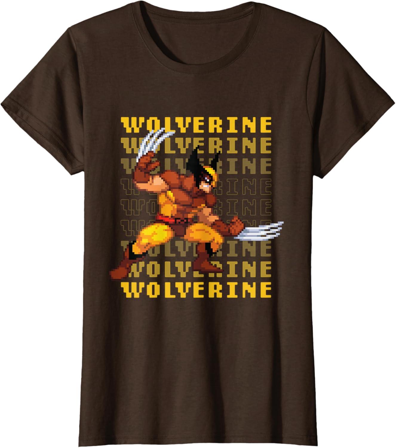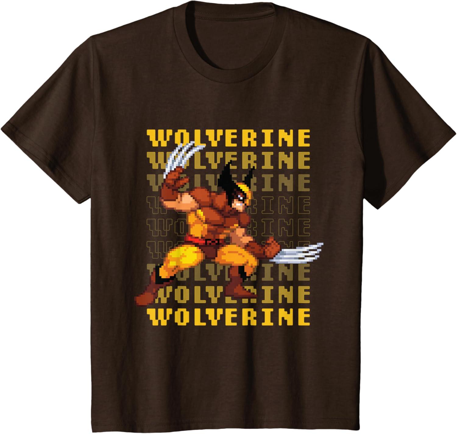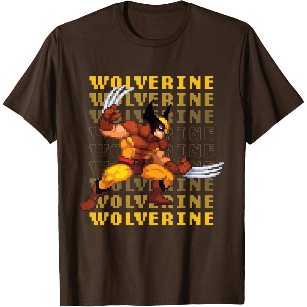 Marvel Cosmic Invasion Game Wolverine Retro Pixel Graphics T-Shirt(Brown)