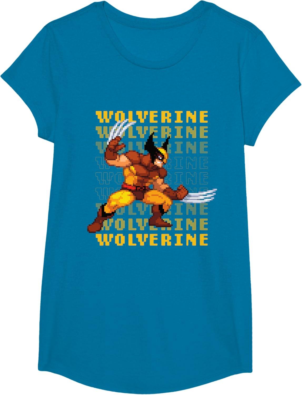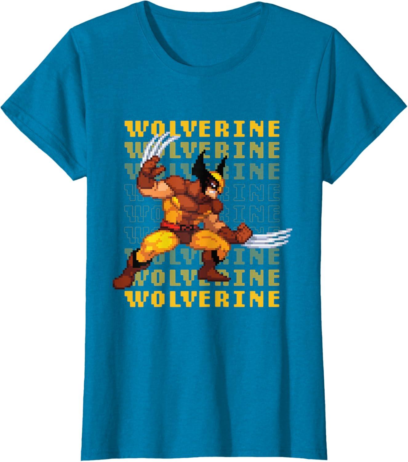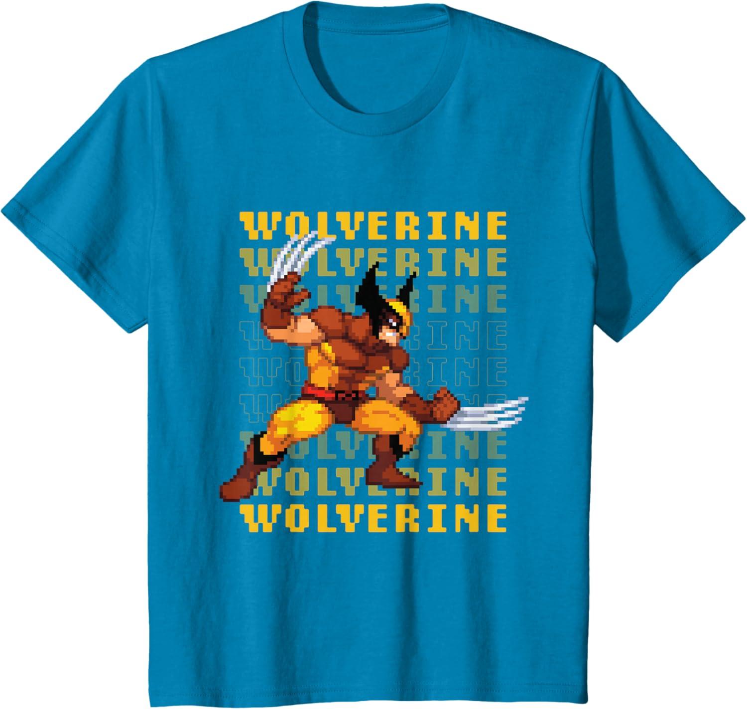 Marvel Cosmic Invasion Game Wolverine Retro Pixel Graphics T-Shirt(Sapphire Blue)