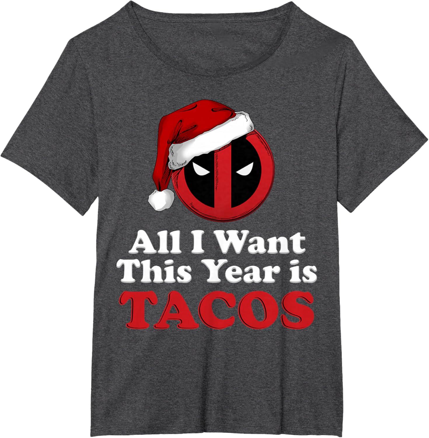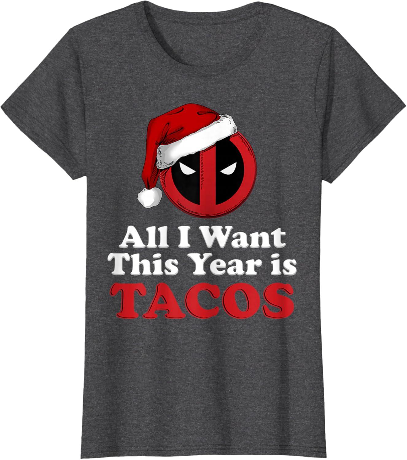 Marvel Deadpool I Want Tacos For Christmas Graphic T-Shirt(Dark Heather Grey)