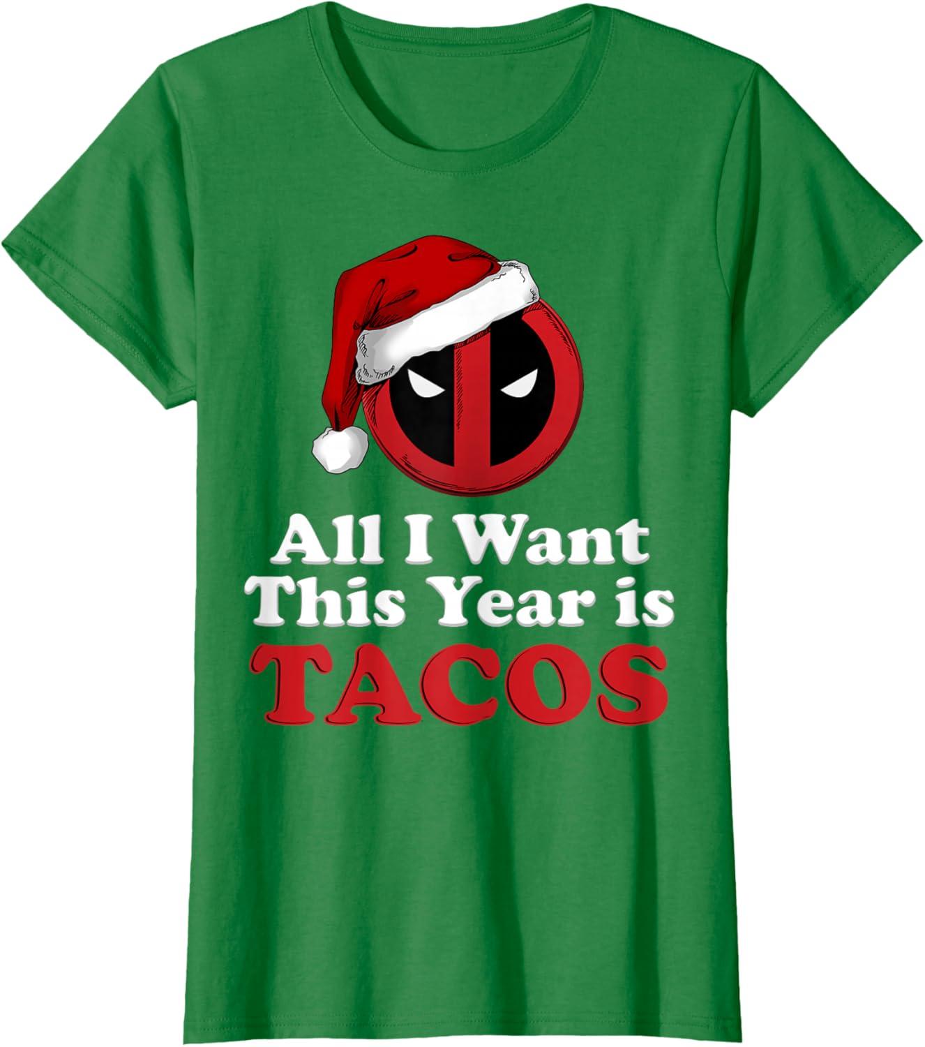 Marvel Deadpool I Want Tacos For Christmas Graphic T-Shirt(Kelly Green)