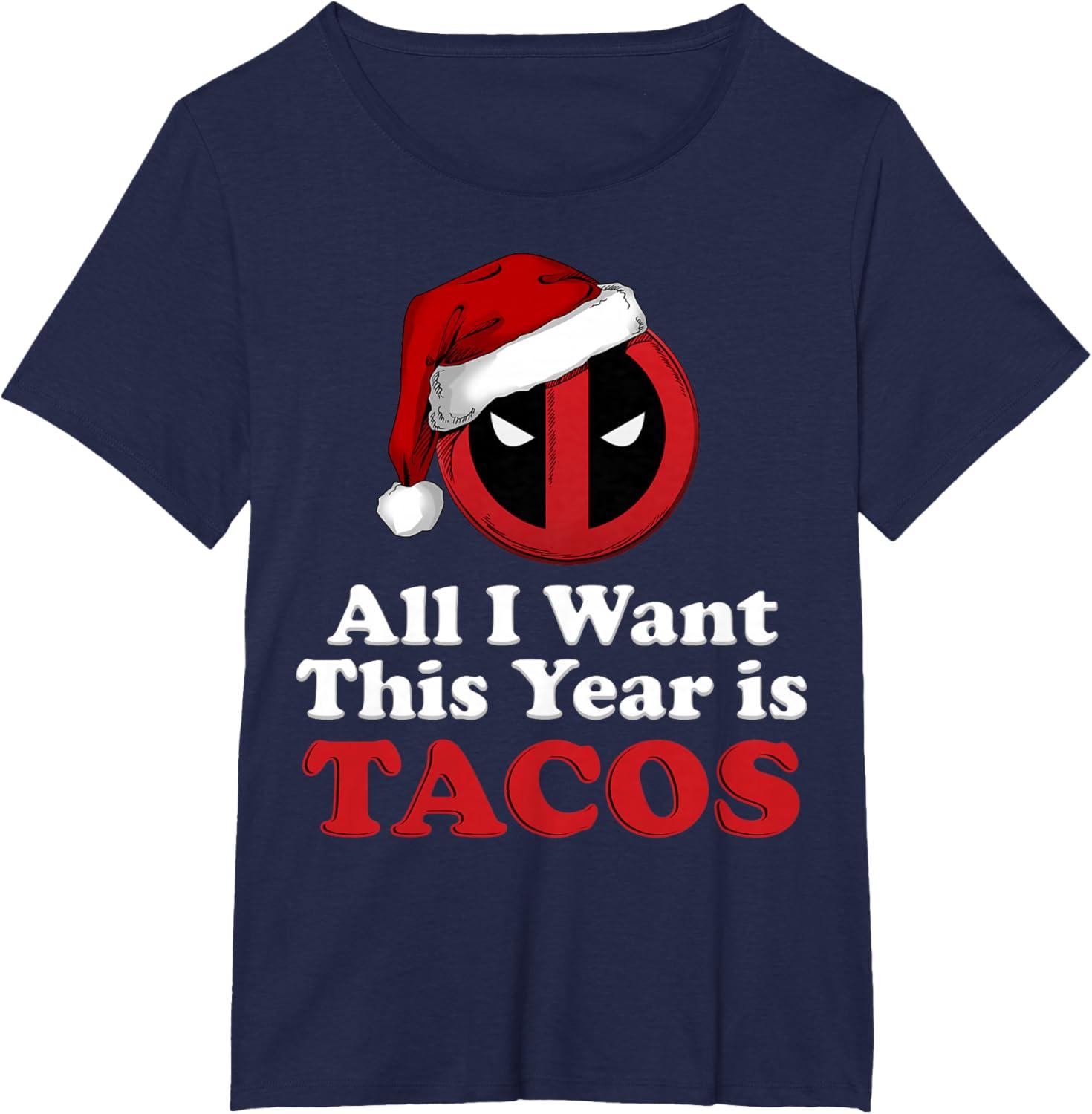 Marvel Deadpool I Want Tacos For Christmas Graphic T-Shirt(Black)