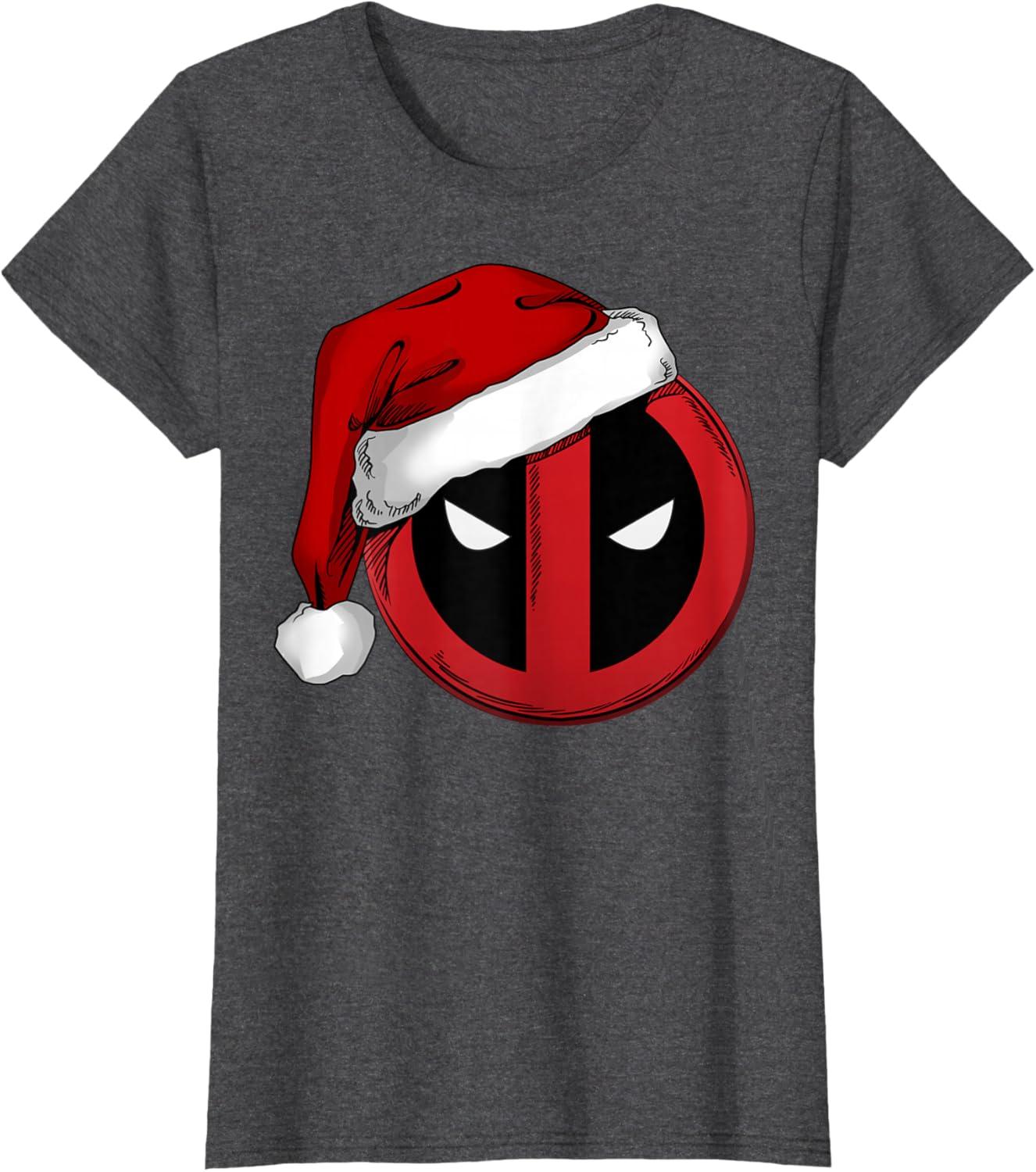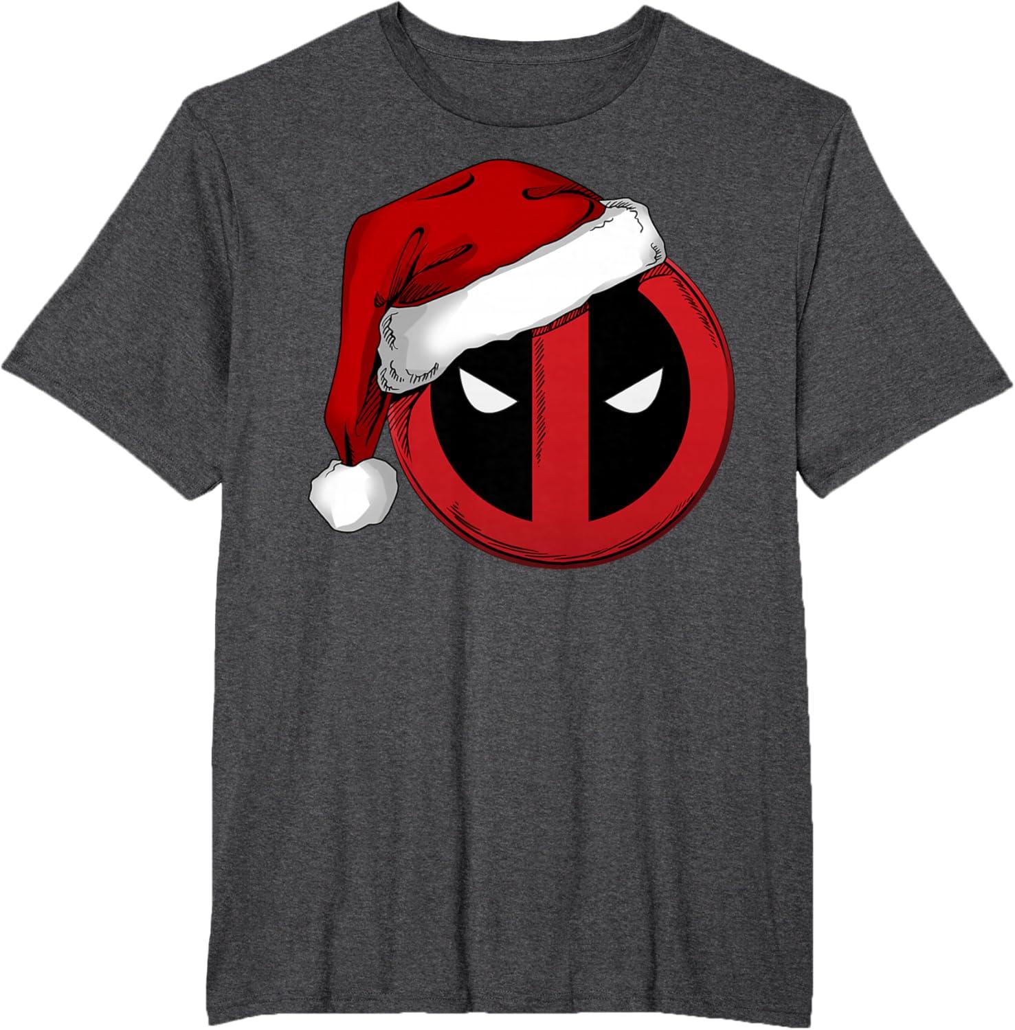 Marvel Deadpool Icon Santa Hat Christmas Graphic T-Shirt(Heather Grey)