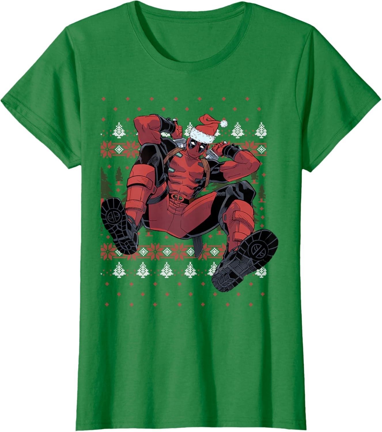 Marvel Deadpool Santa Hat Ugly Sweater Christmas T-Shirt(Kelly Green)