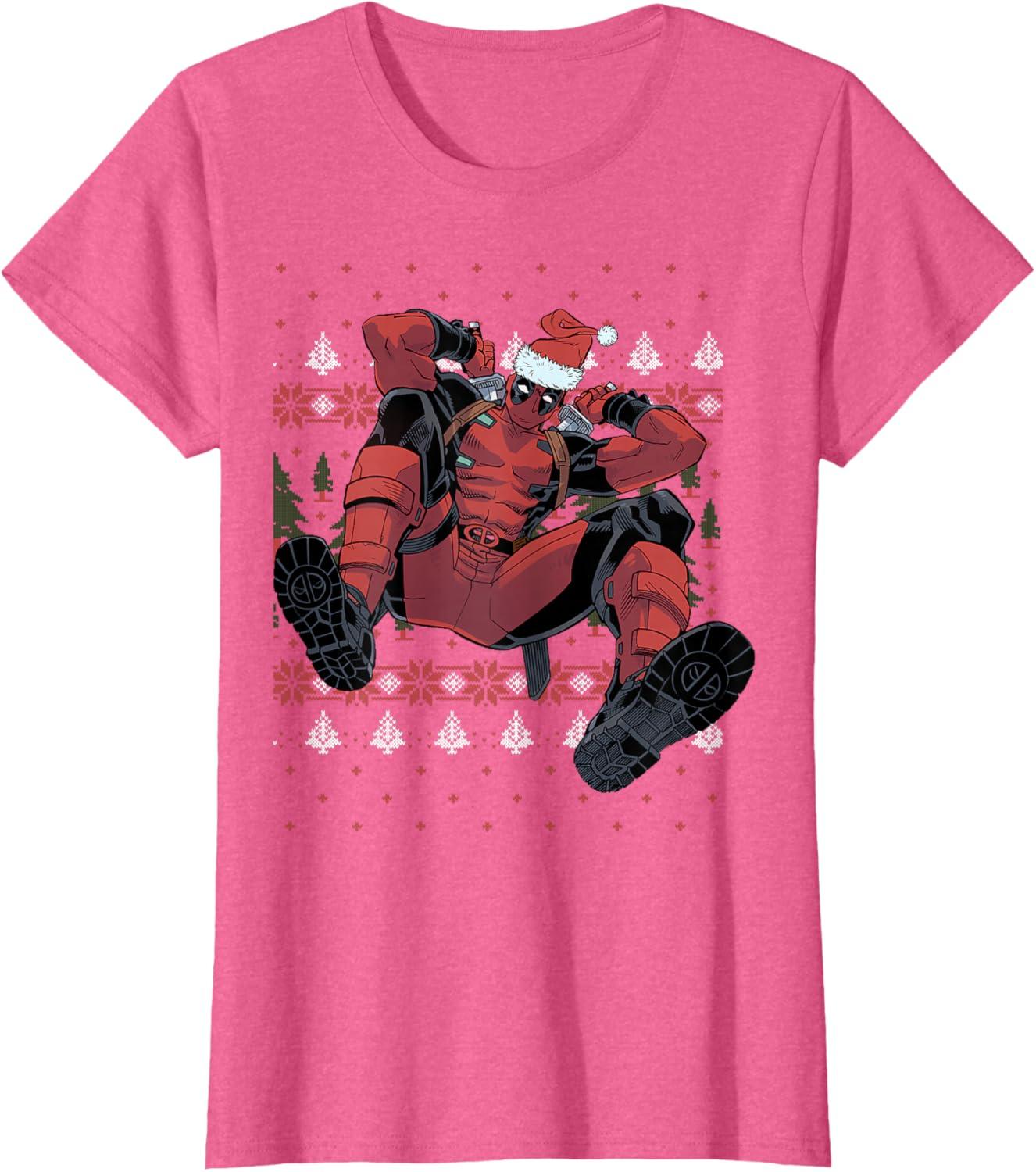 Marvel Deadpool Santa Hat Ugly Sweater Christmas T-Shirt(Pink Heather)