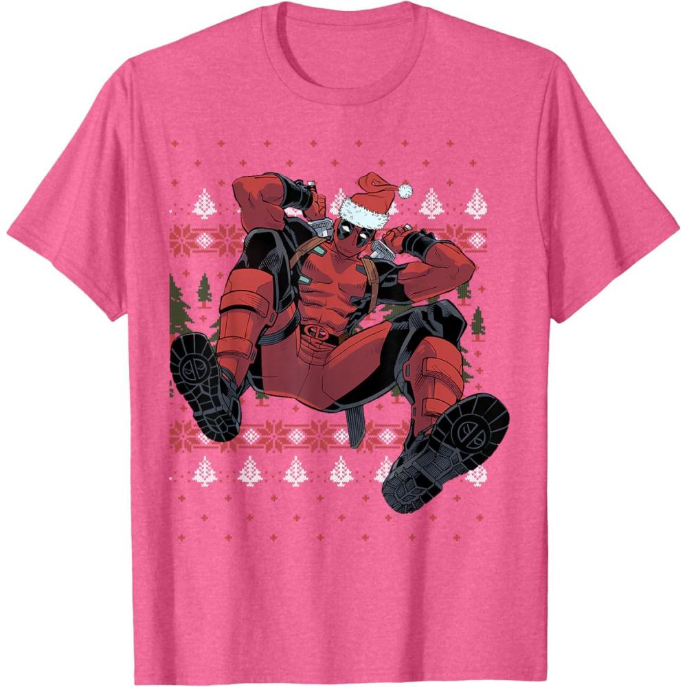 Be the first to review “Marvel Deadpool Santa Hat Ugly Sweater Christmas T-Shirt(Pink Heather)”