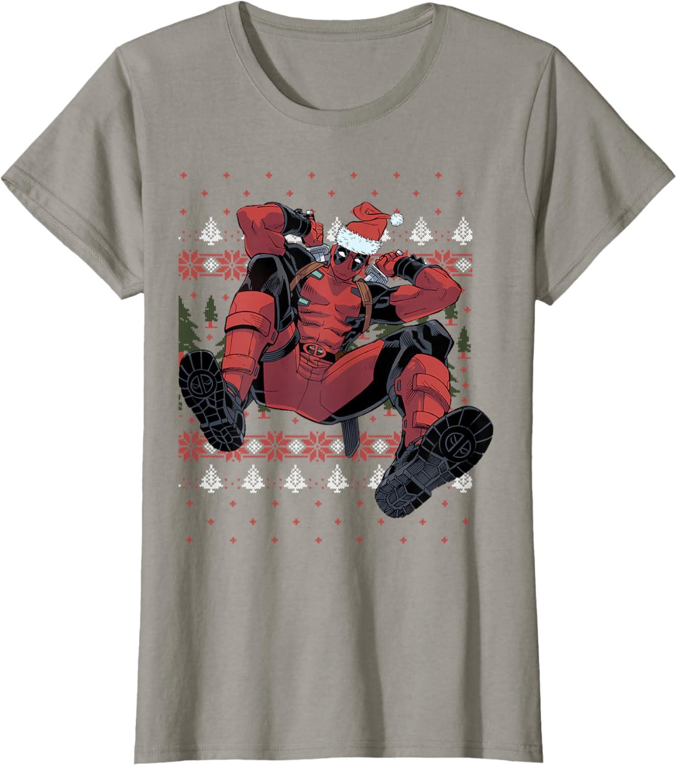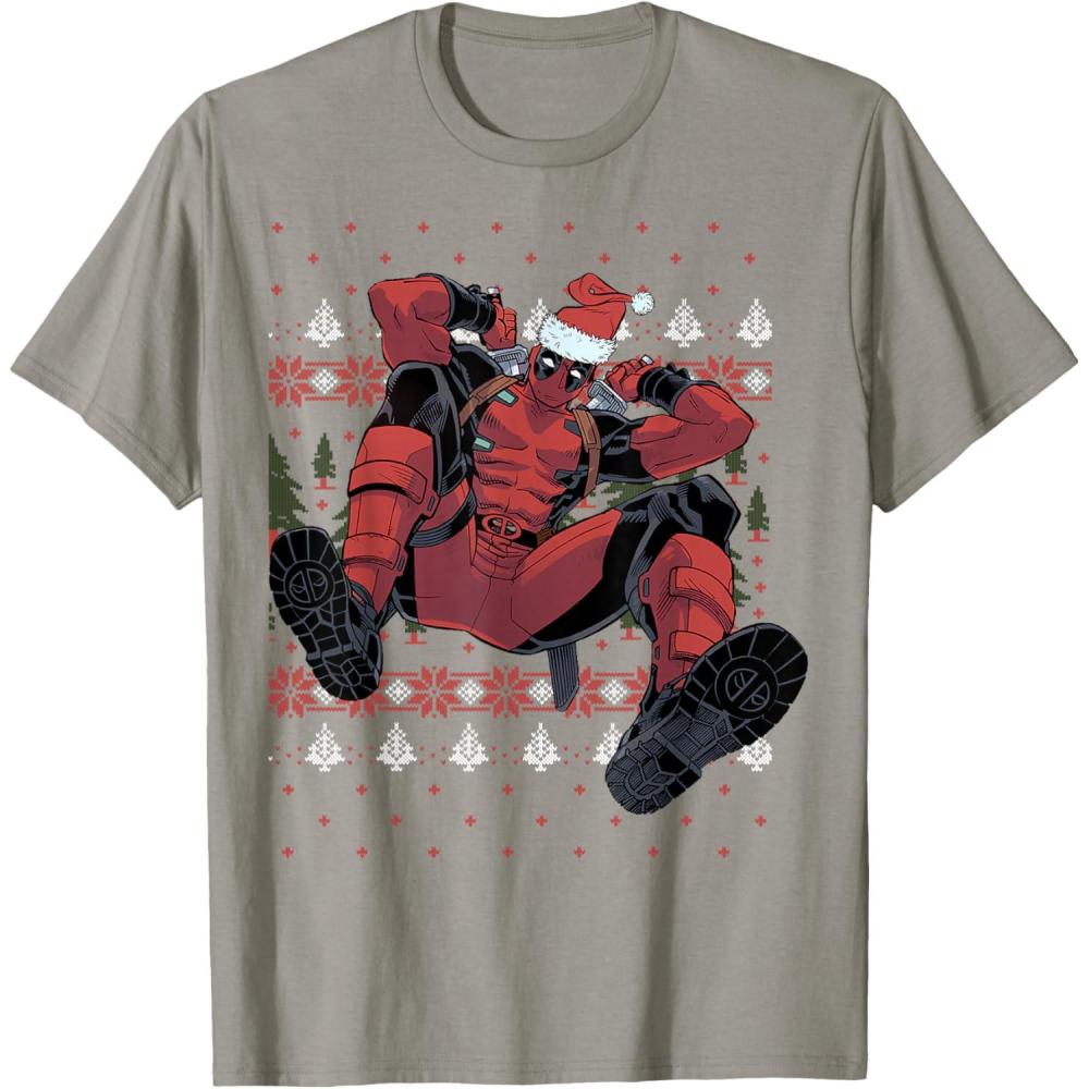 Marvel Deadpool Santa Hat Ugly Sweater Christmas T-Shirt(Slate Grey)