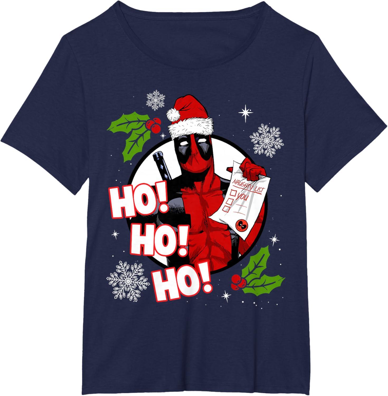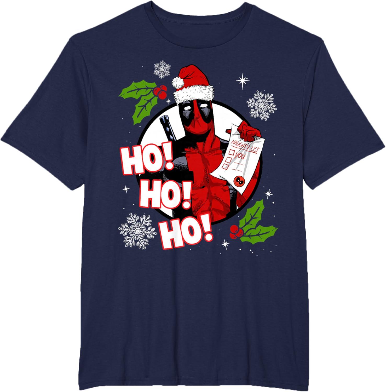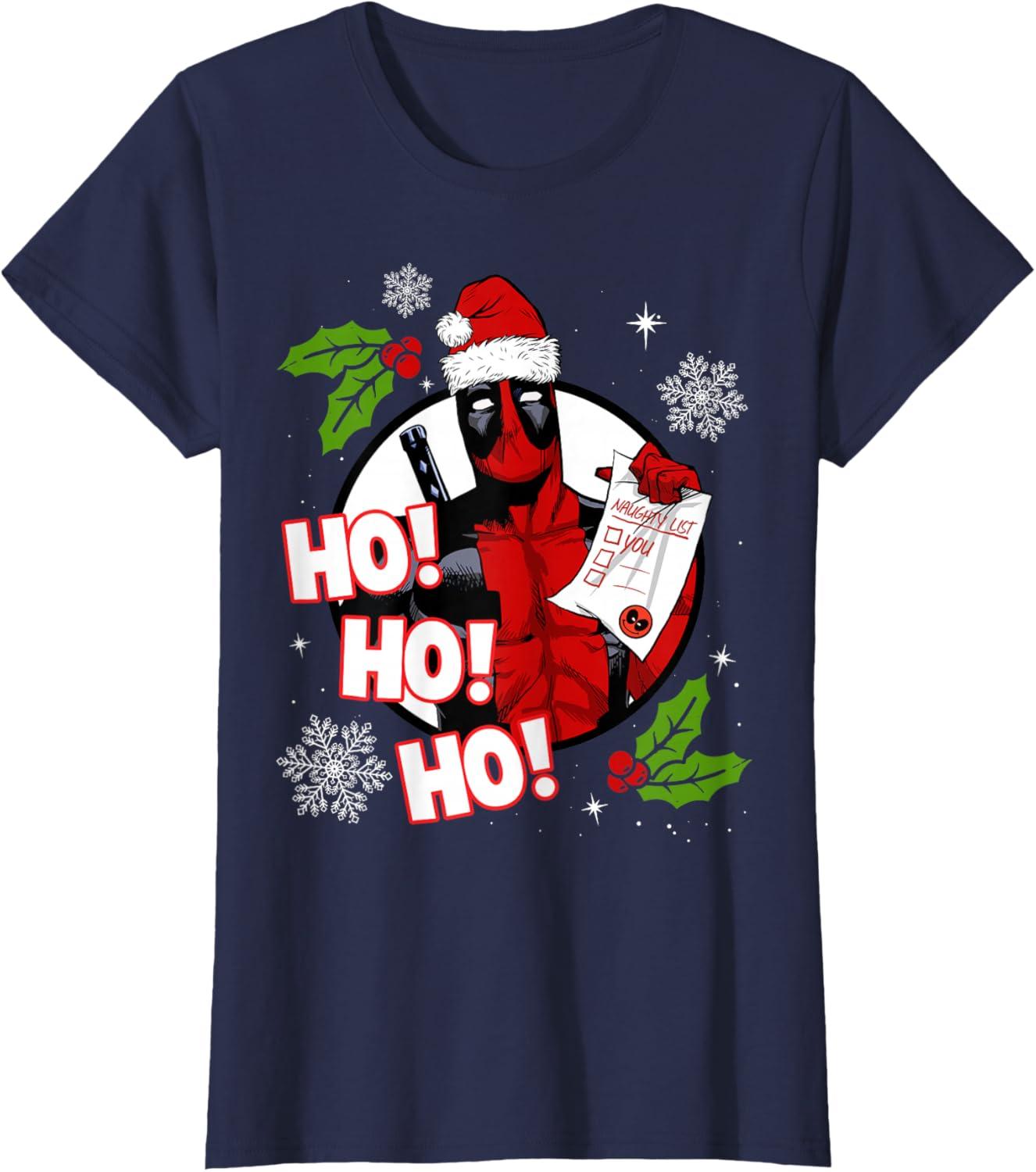 Marvel Deadpool Santa Naughty List Christmas Graphic T-Shirt(Navy Blue)