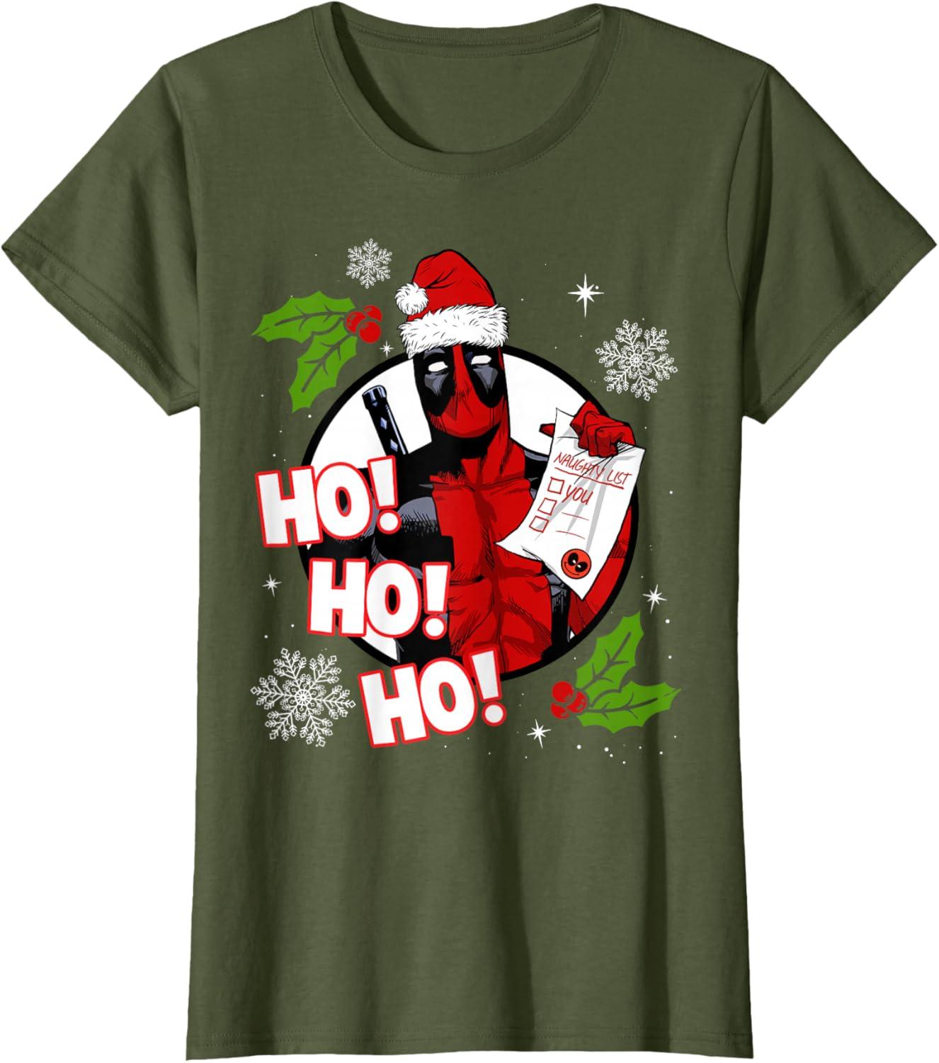 Marvel Deadpool Santa Naughty List Christmas Graphic T-Shirt(Olive Green)