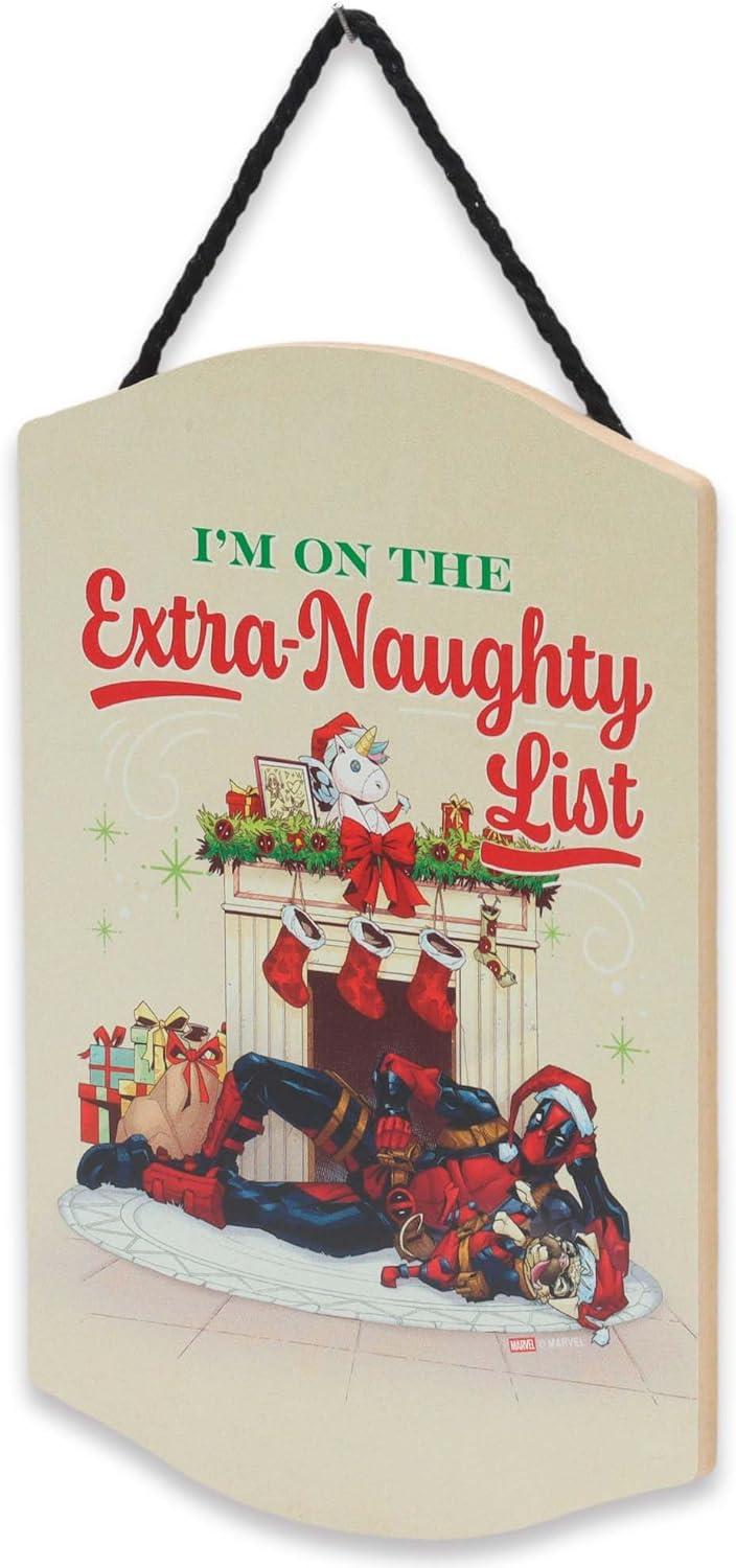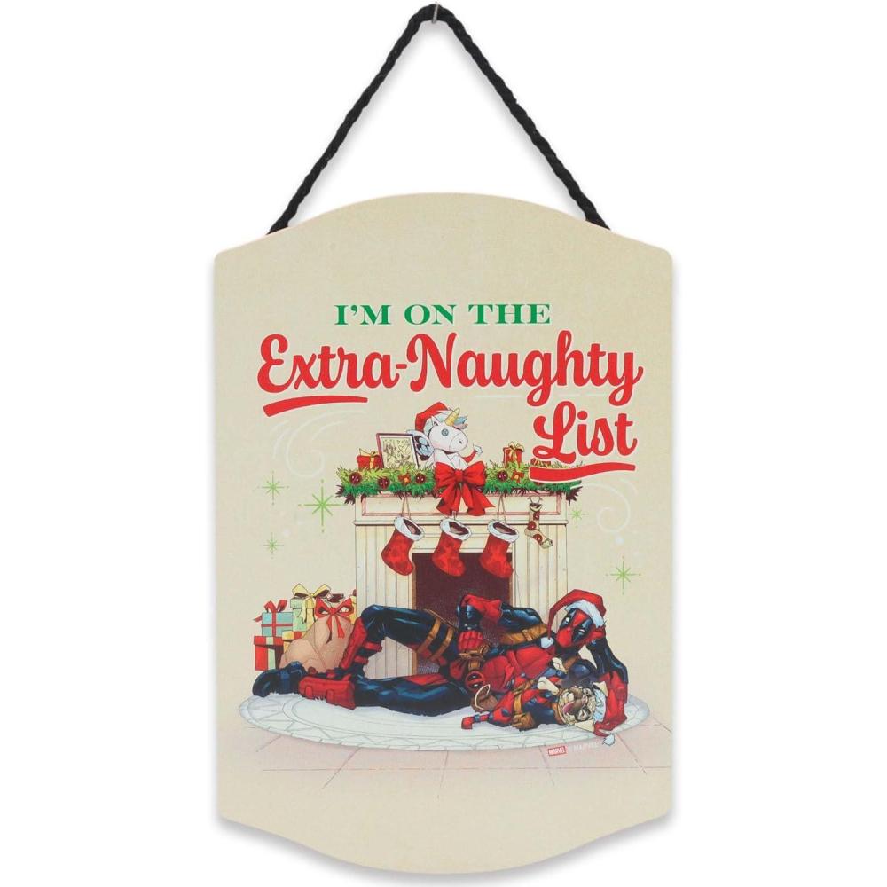 Fun Vintage Sign: Made from durable printed wood, this lightweight sign hangs easily and adds attitude to any festive scene. A bold holiday touch for comic book lovers.