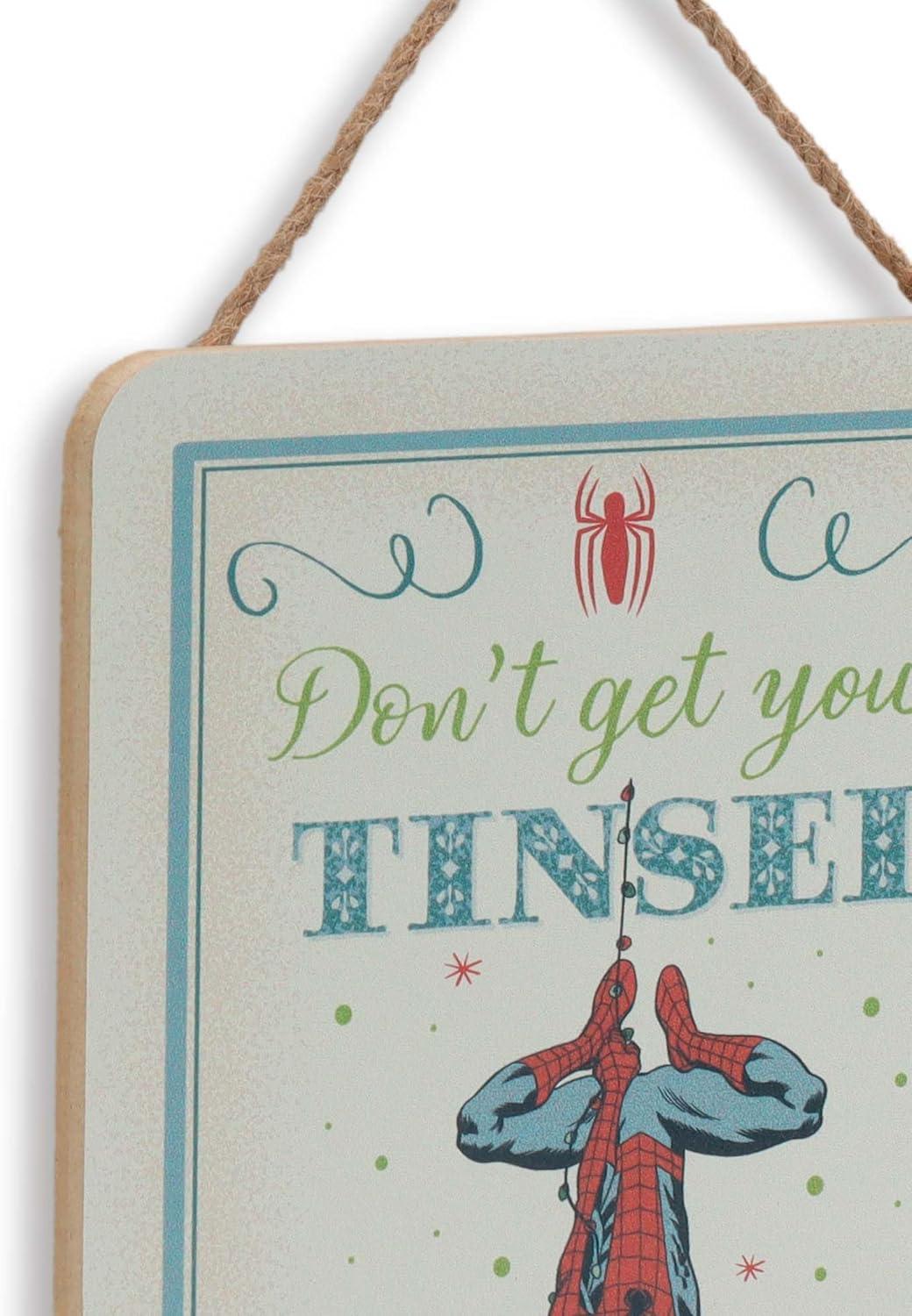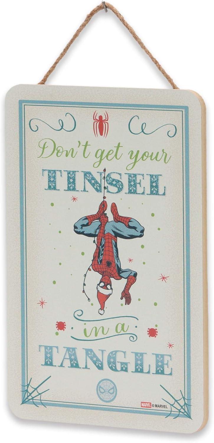 Fun Vintage Sign: Made from durable printed wood, this lightweight sign hangs easily and adds attitude to any festive scene. A bold holiday touch for comic book lovers.