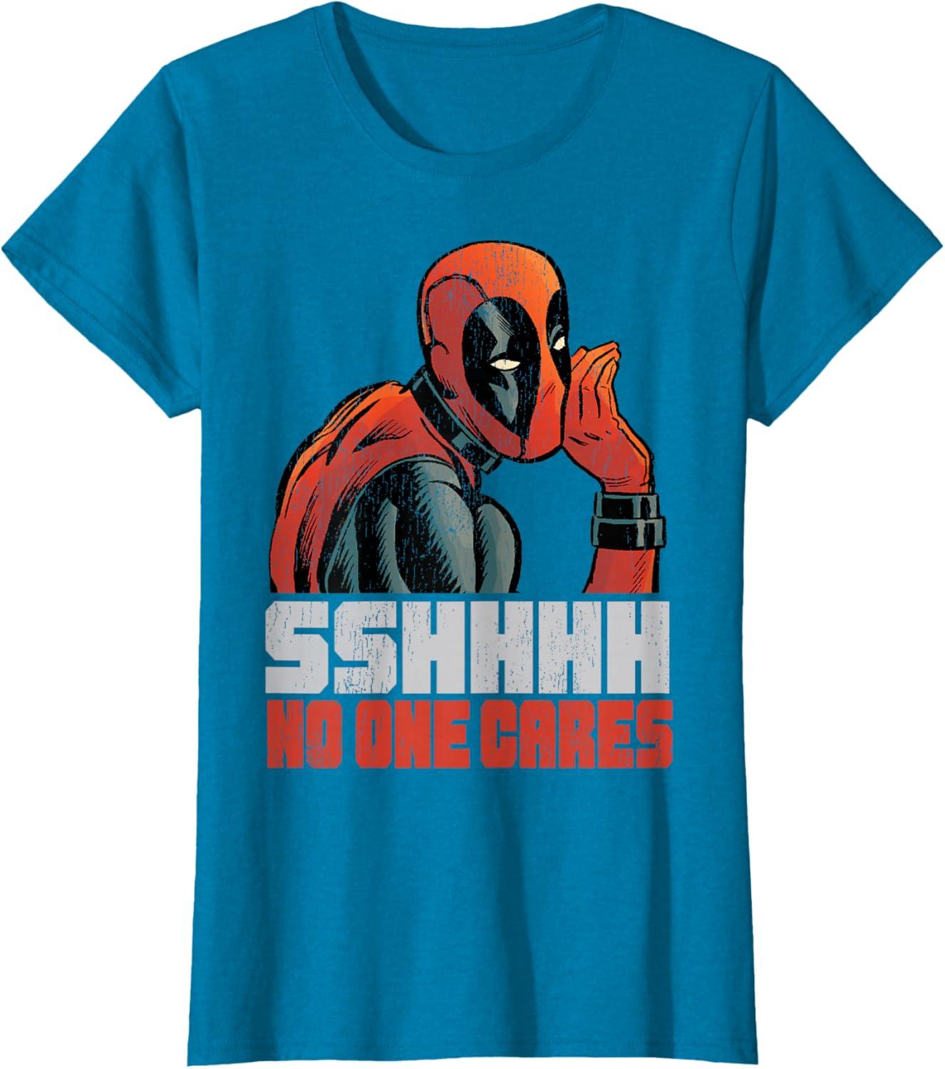 Marvel Deadpool SSHHHH No One Cares Whisper T-Shirt(Sapphire Blue)