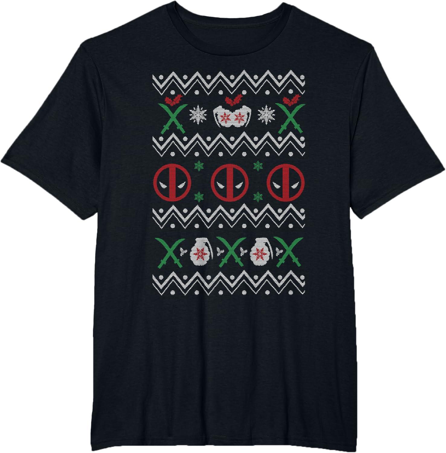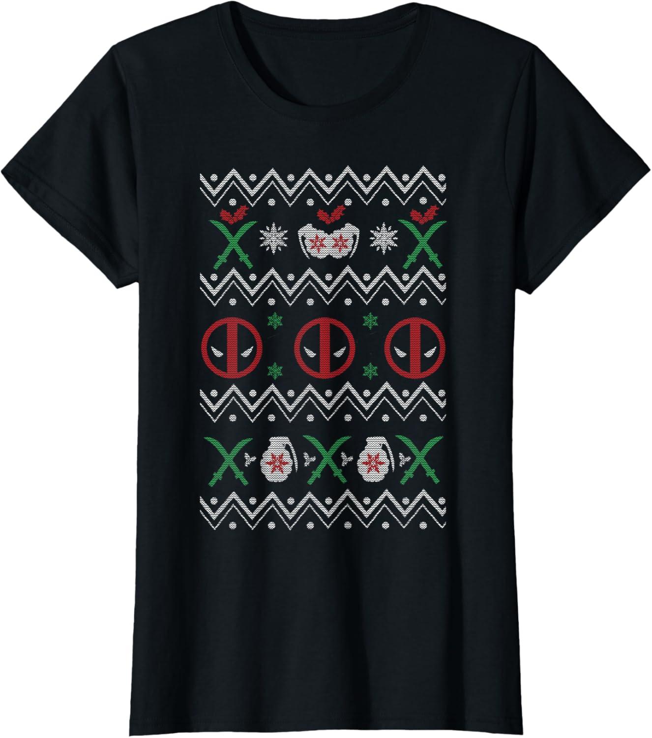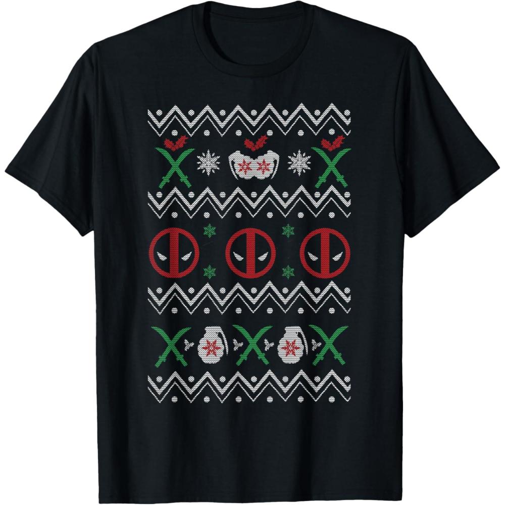 Marvel Deadpool Weapons Ugly Christmas Sweater T-Shirt(Black)
