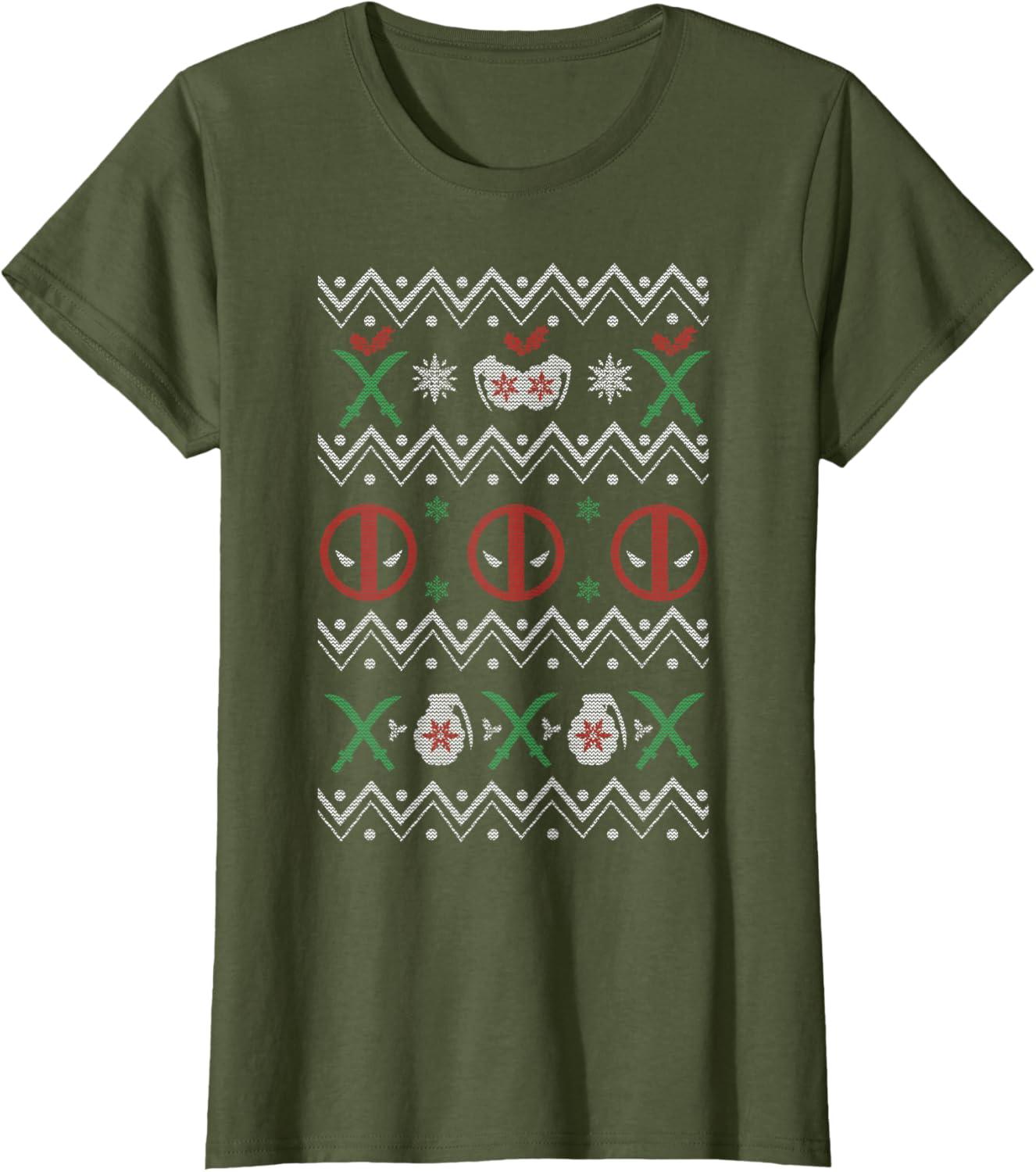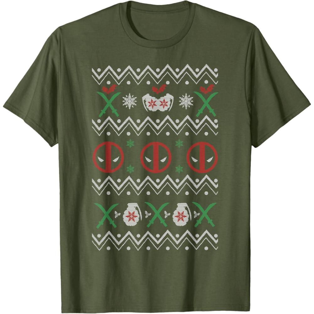 Marvel Deadpool Weapons Ugly Christmas Sweater T-Shirt(Olive Green)
