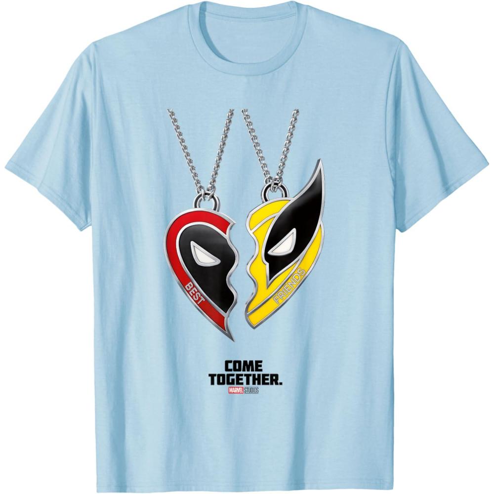 Marvel Deadpool & Wolverine Come Together Friendship Poster T-Shirt(Baby Blue)