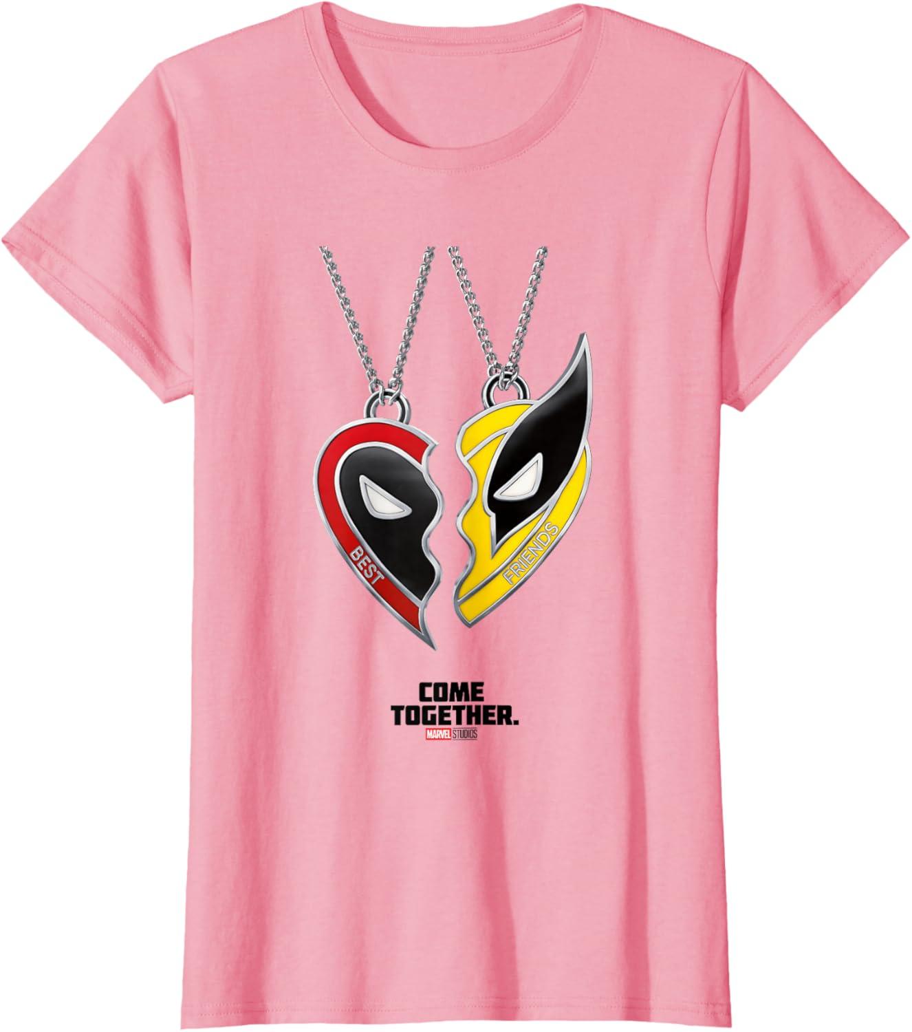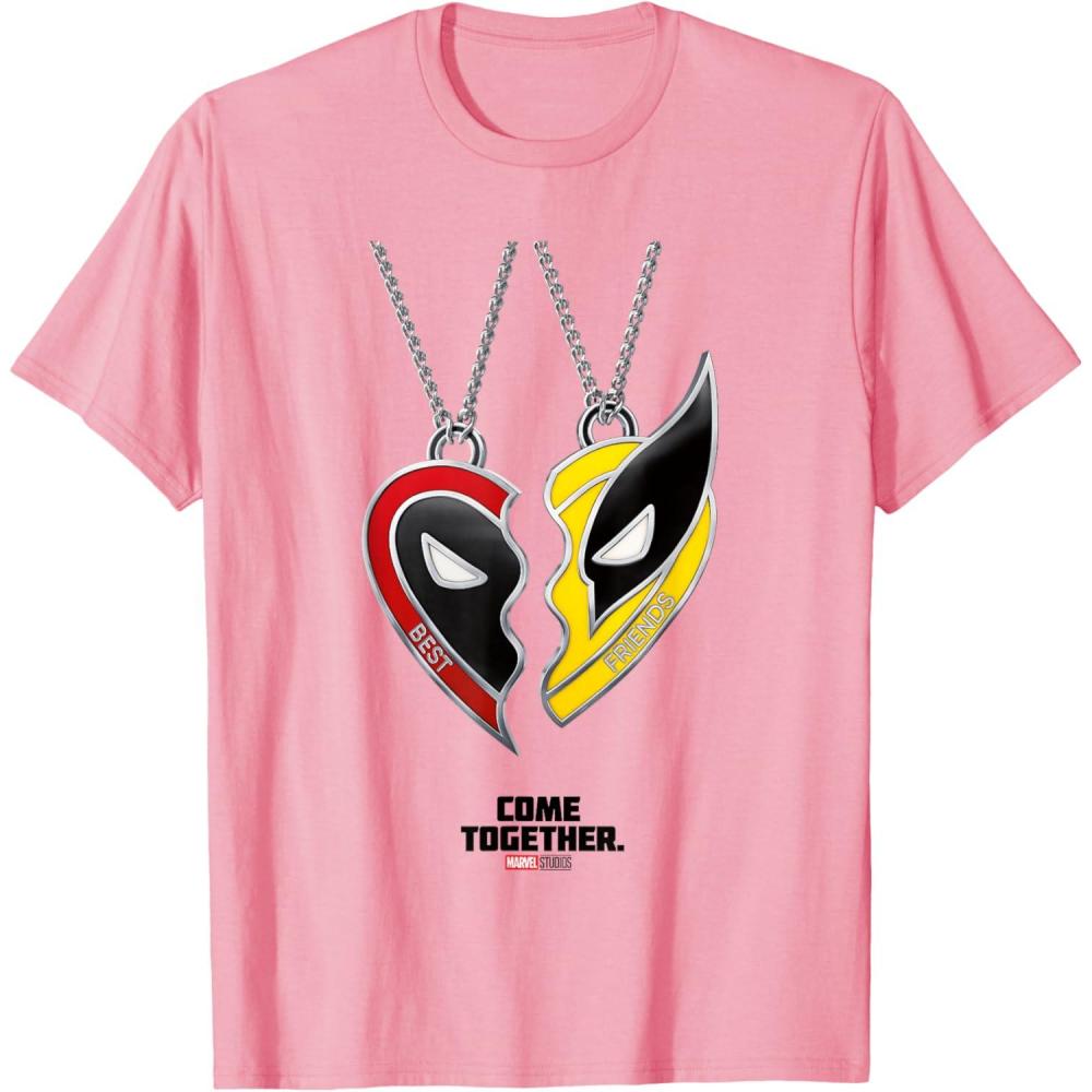 Marvel Deadpool & Wolverine Come Together Friendship Poster T-Shirt(Pink)
