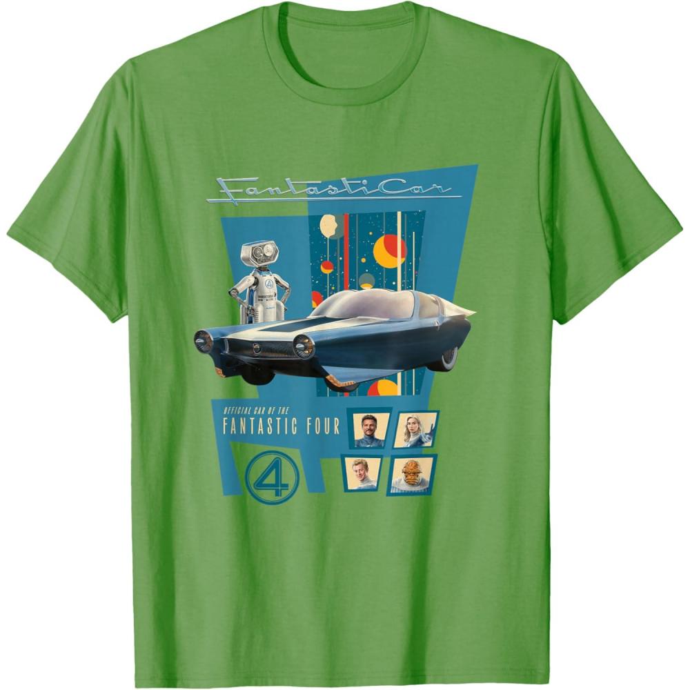 Fantastic Four Vehicles design. Join the First Family of the Marvel Cinematic Universe with this official tee or hoodie from Marvel Studios' blockbuster new movie “The Fantastic Four: First Steps”, featuring a vintage 1960s showroom style logo and illustration of the retro-futuristic FantastiCar (“Official car of the Fantastic Four”), along with loyal robot H.E.R.B.I.E., the famous “4” team icon, and images of Mister Fantastic, the Invisible Woman, the Human Torch, and the Thing. A great gift for an MCU or Fantastic Four fan! Get multiples and wear matching Fantastic Four t-shirts with friends and family at your super hero themed party, comic convention, or group trip to Disneyland, Walt Disney World, or Avengers Campus at Disney California Adventure Park. Available in youth and adult sizes. Find it in a t-shirt, premium t-shirt, tank top, v-neck, long sleeve tee, hoodie, and sweatshirt.