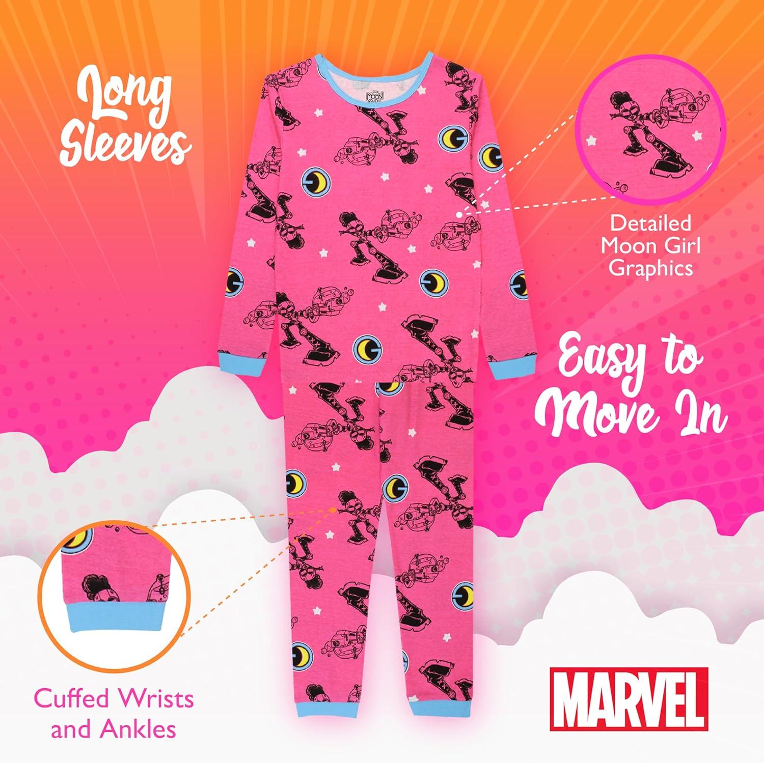 Your little girl will love wearing these soft, cozy pajamas featuring her favorite Marvel superhero. Perfect for bedtime or lazy days of play, these Moon Girl pj’s will become your child’s new favorite bedtime clothes.