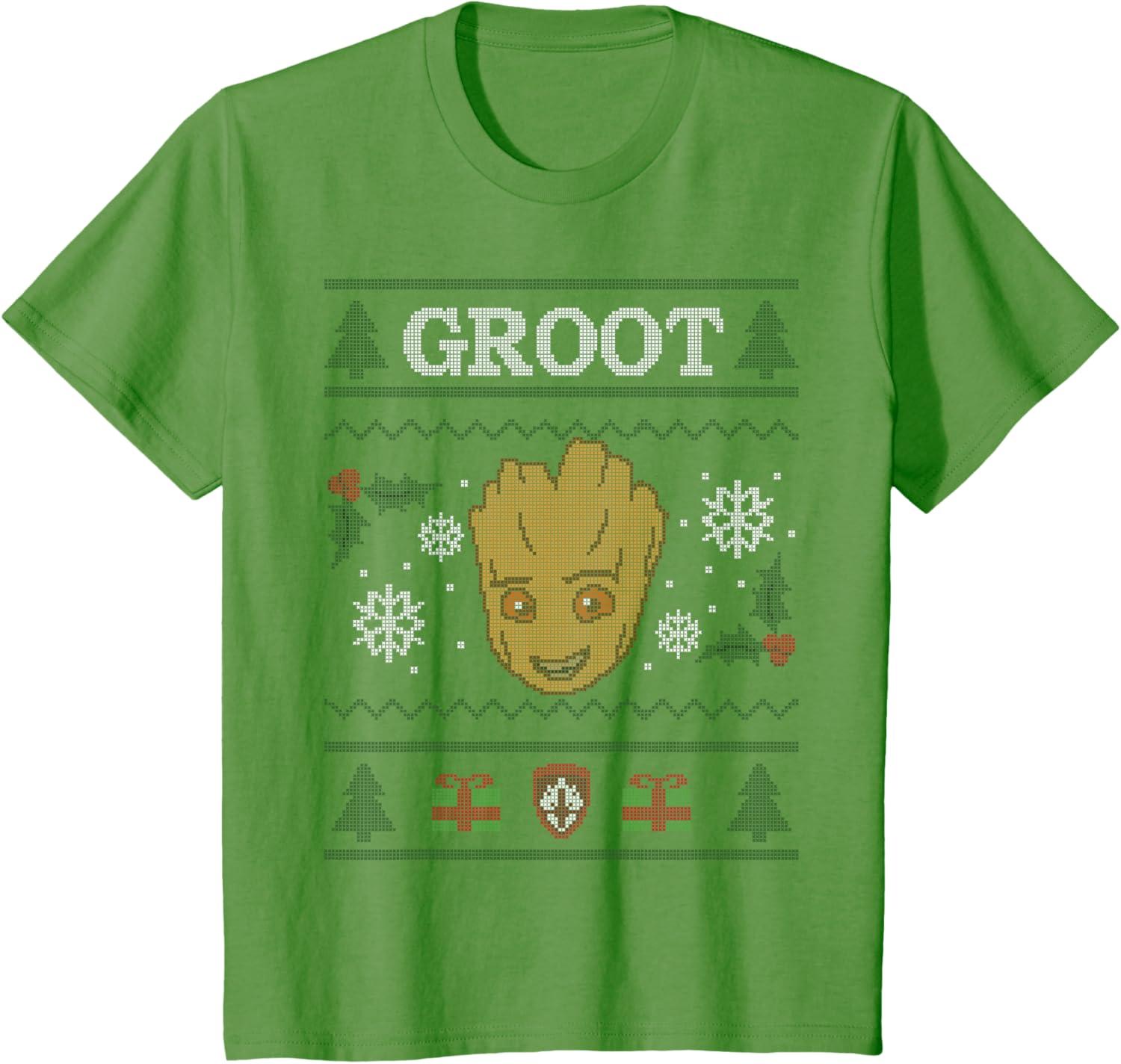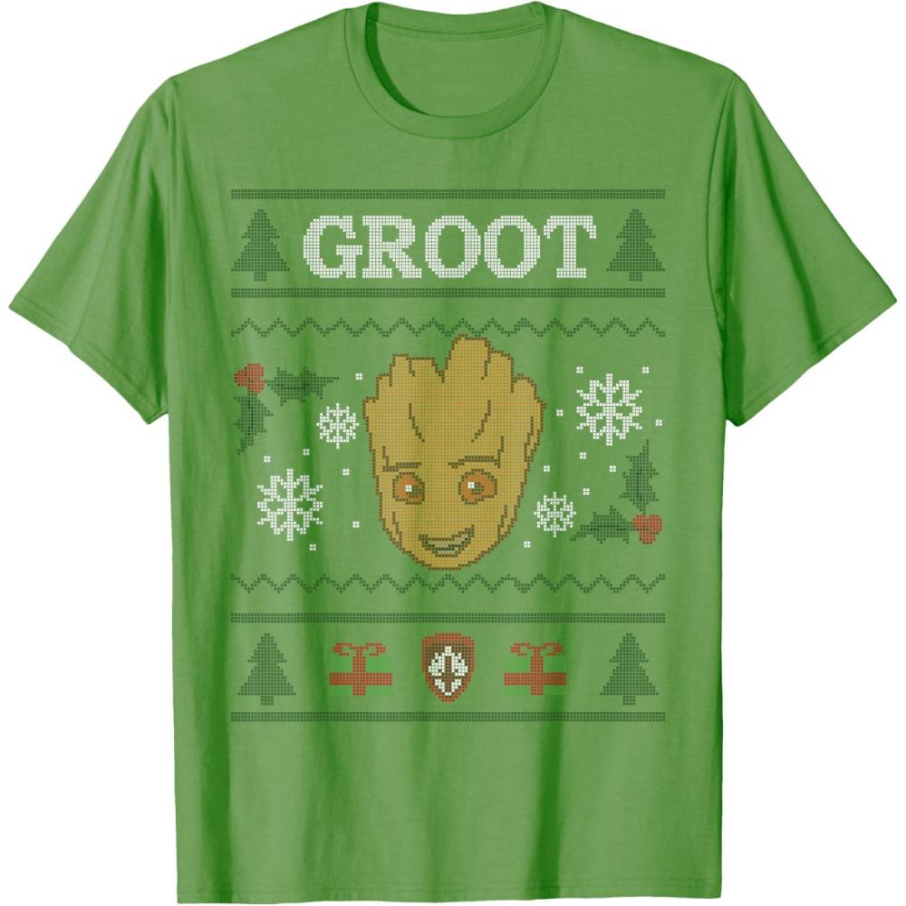 Marvel Groot Guardians of the Galaxy Ugly Christmas Sweater T-Shirt(Grass Green)