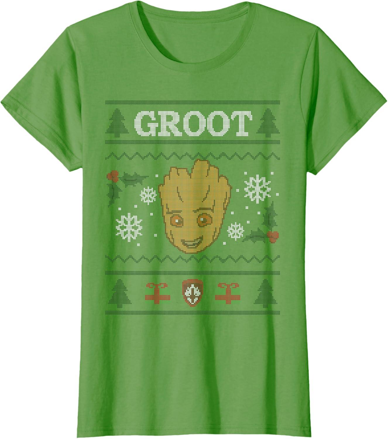 Marvel Groot Guardians of the Galaxy Ugly Christmas Sweater T-Shirt(Black)