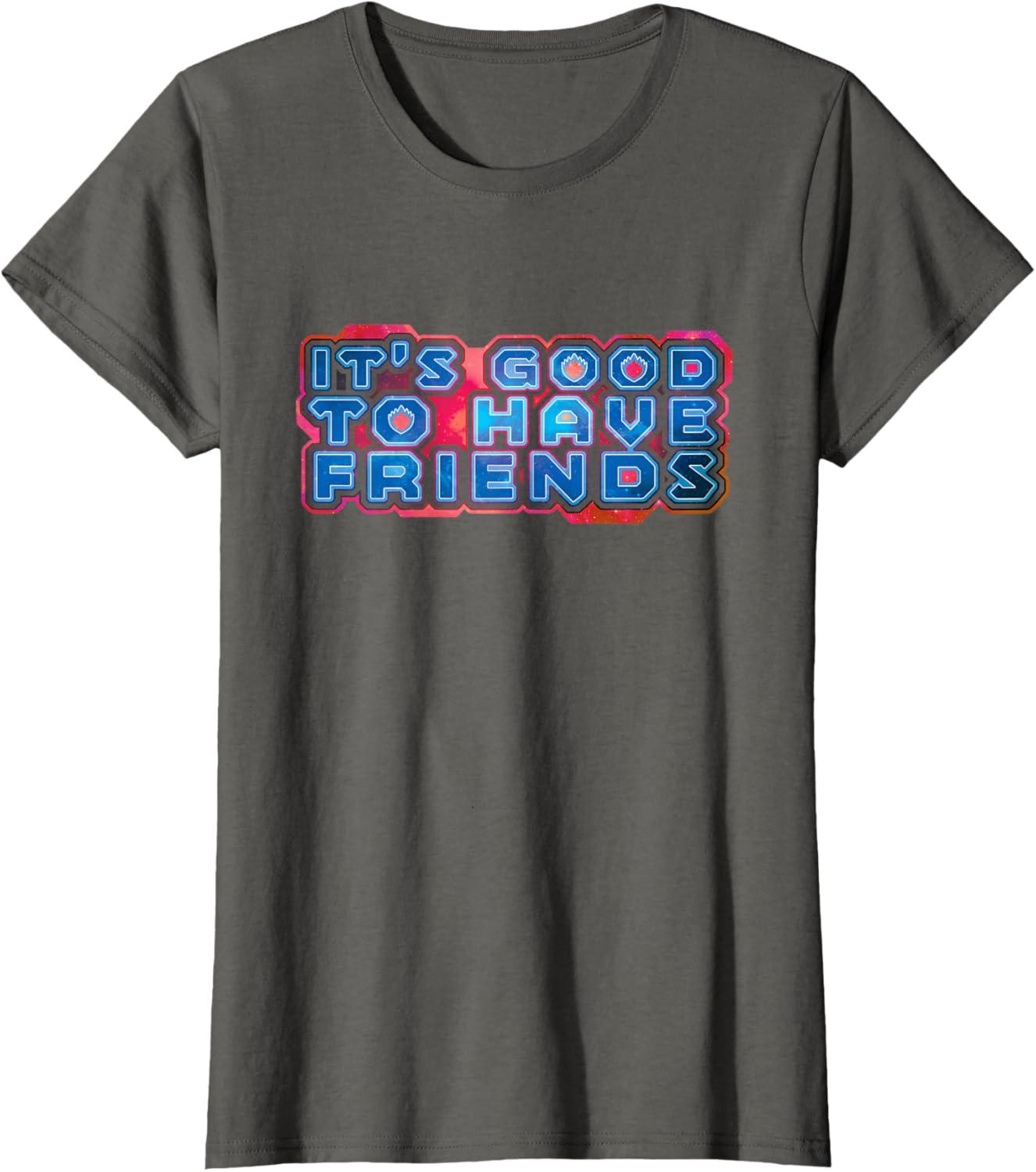 Tell the universe “It’s Good to Have Friends” with this official tee or hoodie from Marvel Studios’ blockbuster “Guardians of the Galaxy Volume 3” movie sequel, featuring a memorable quote from the film with a colorful starry space background and the Guardians team’s Ravager flame badge icon logo. A great gift for a Rocket Raccoon, Guardians of the Galaxy, or Marvel Cinematic Universe (MCU) fan. Available in youth and adult sizes. Find it in a t-shirt, premium t-shirt, tank top, v-neck, long sleeve tee, hoodie, and sweatshirt.