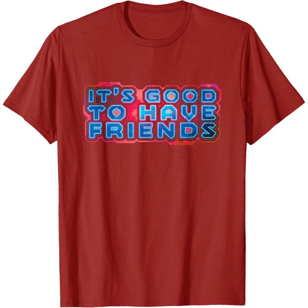 Tell the universe “It’s Good to Have Friends” with this official tee or hoodie from Marvel Studios’ blockbuster “Guardians of the Galaxy Volume 3” movie sequel, featuring a memorable quote from the film with a colorful starry space background and the Guardians team’s Ravager flame badge icon logo. A great gift for a Rocket Raccoon, Guardians of the Galaxy, or Marvel Cinematic Universe (MCU) fan. Available in youth and adult sizes. Find it in a t-shirt, premium t-shirt, tank top, v-neck, long sleeve tee, hoodie, and sweatshirt.