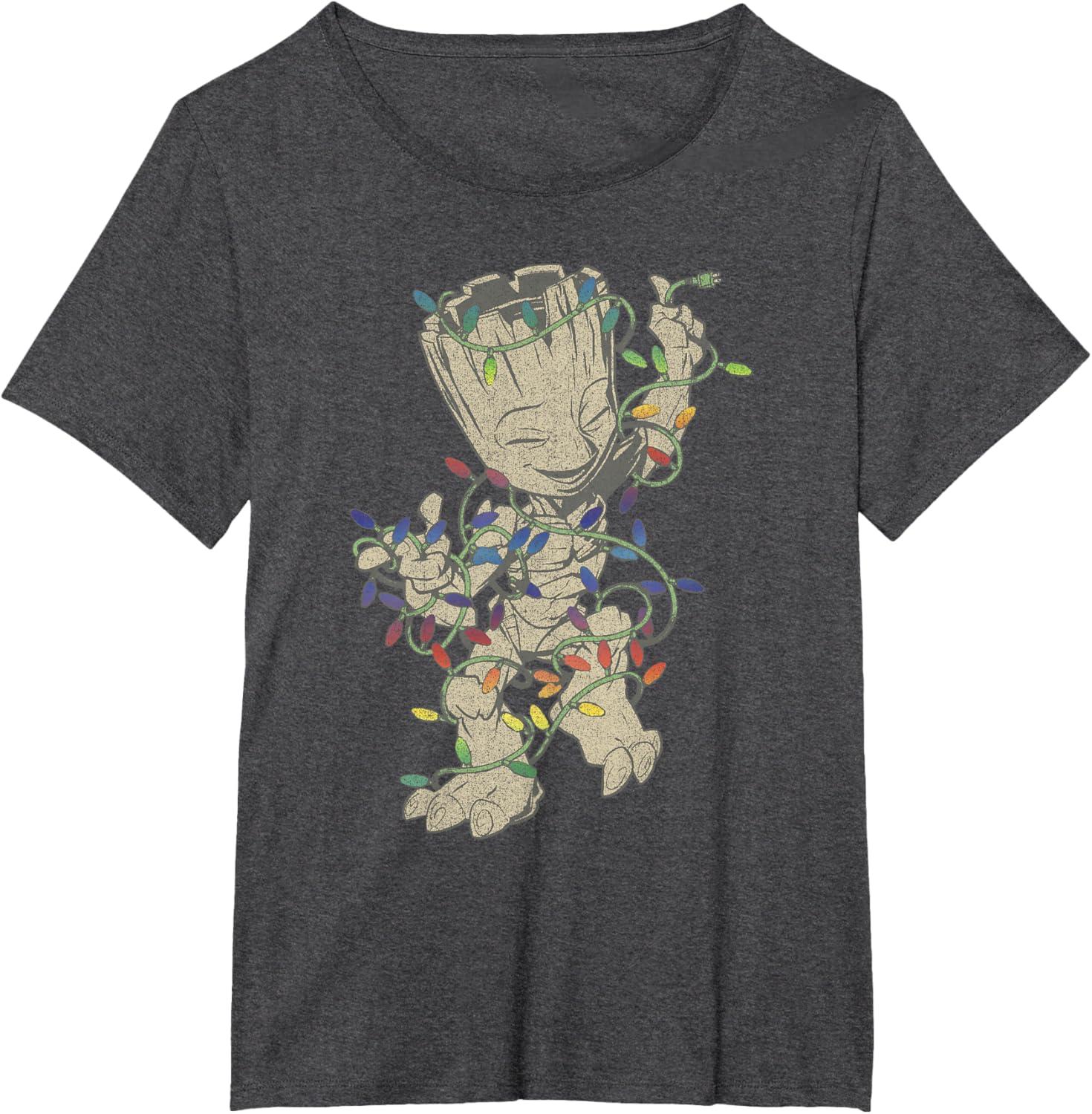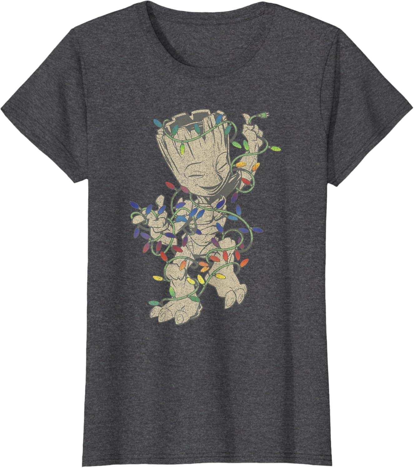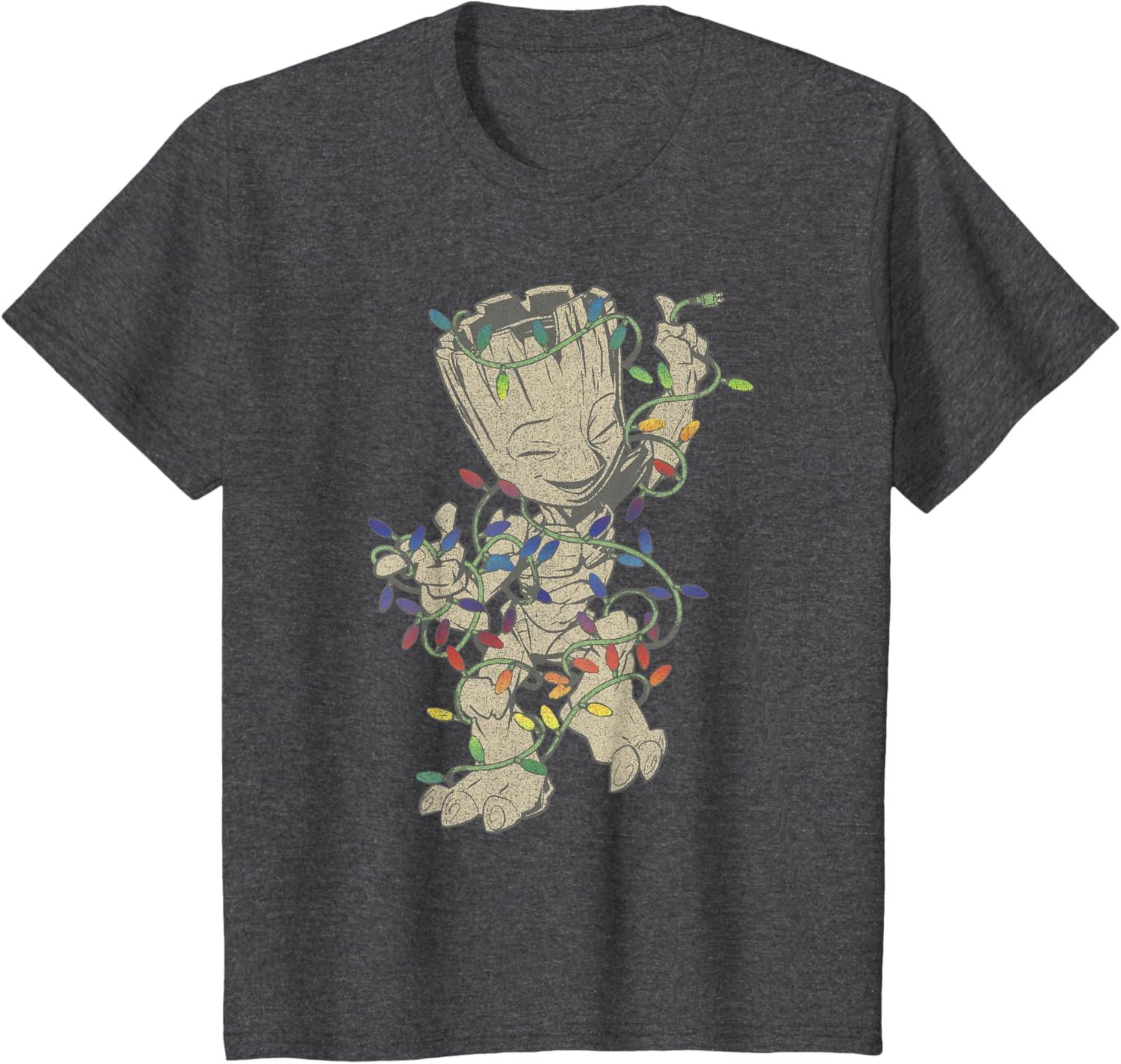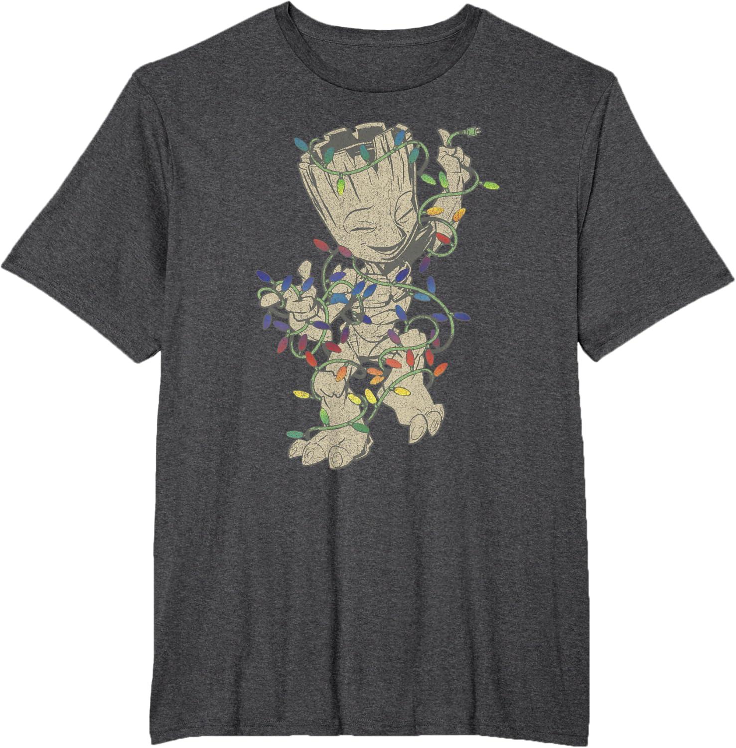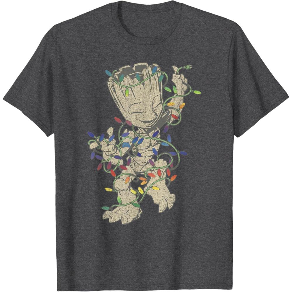 Marvel Guardians Of The Galaxy Groot Christmas Lights T-Shirt(Dark Heather Grey)