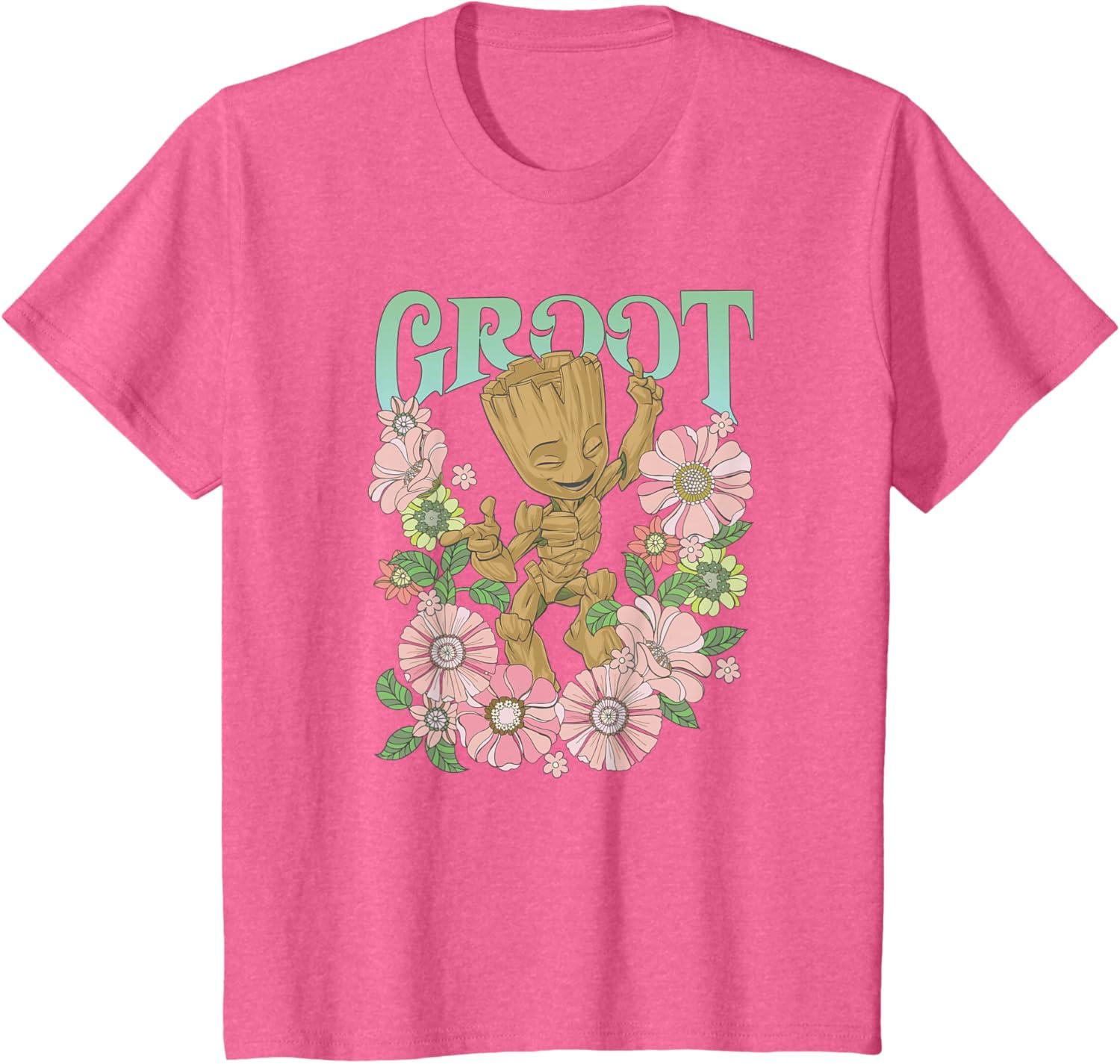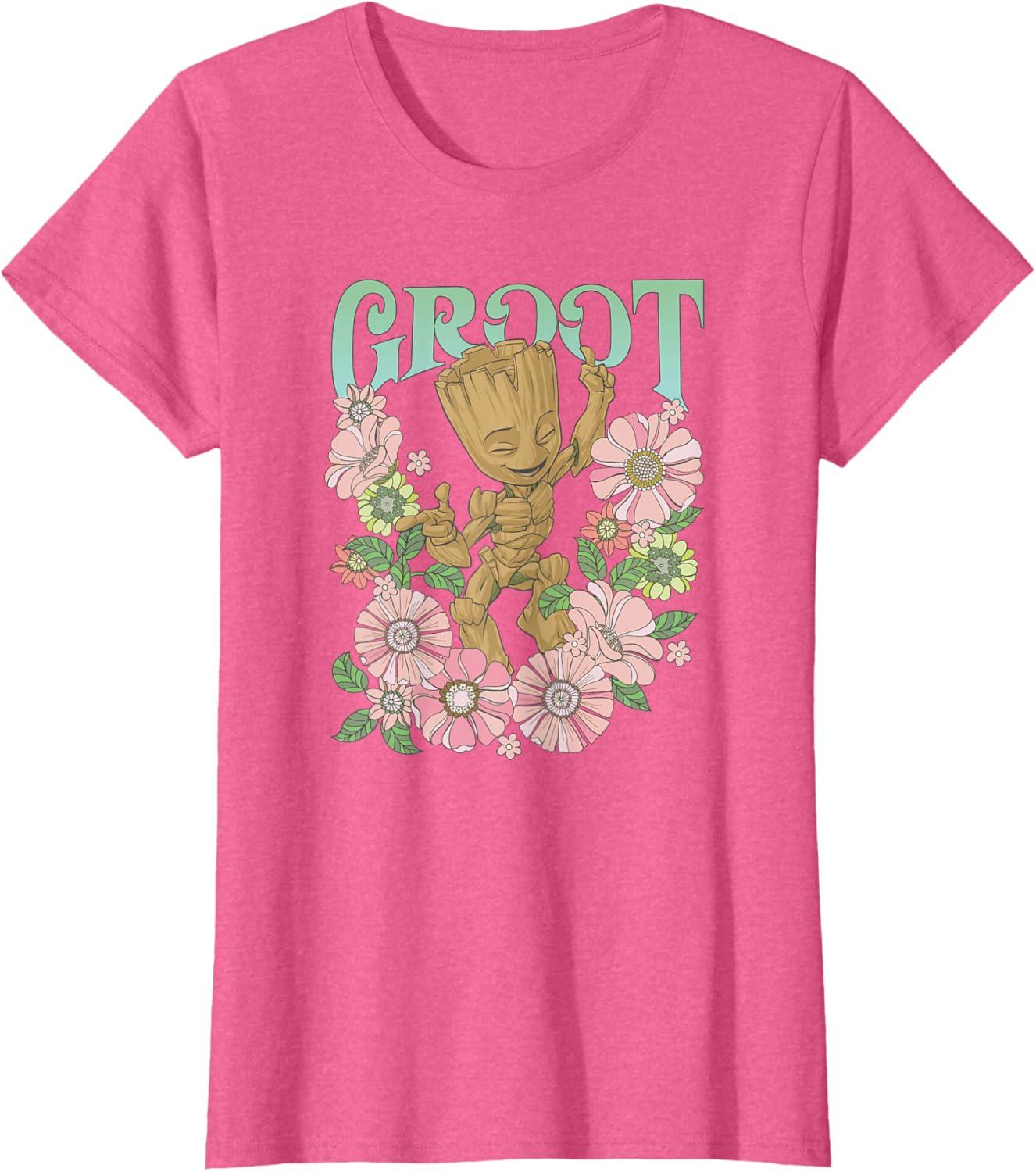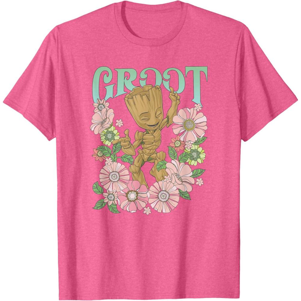 Marvel Guardians Of The Galaxy Groot Floral Dance Poster T-Shirt(Pink Heather)