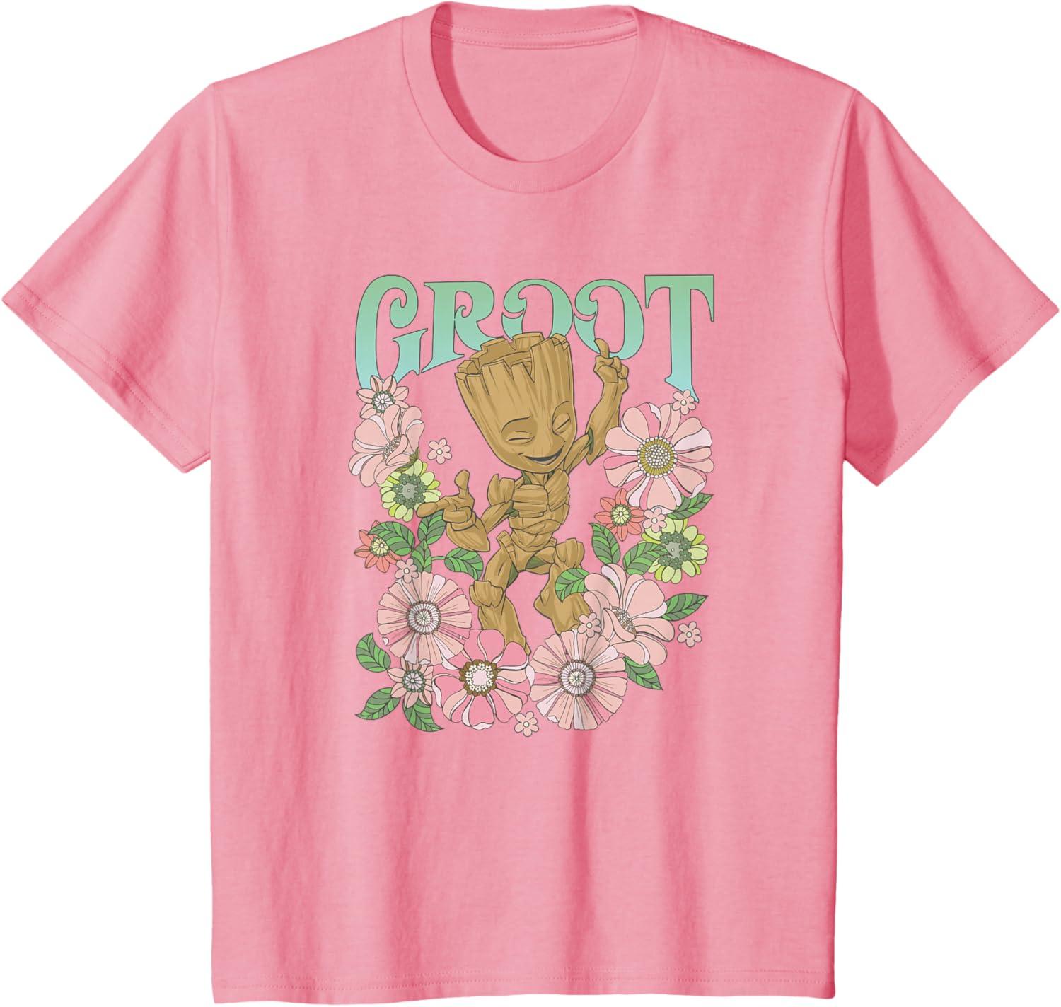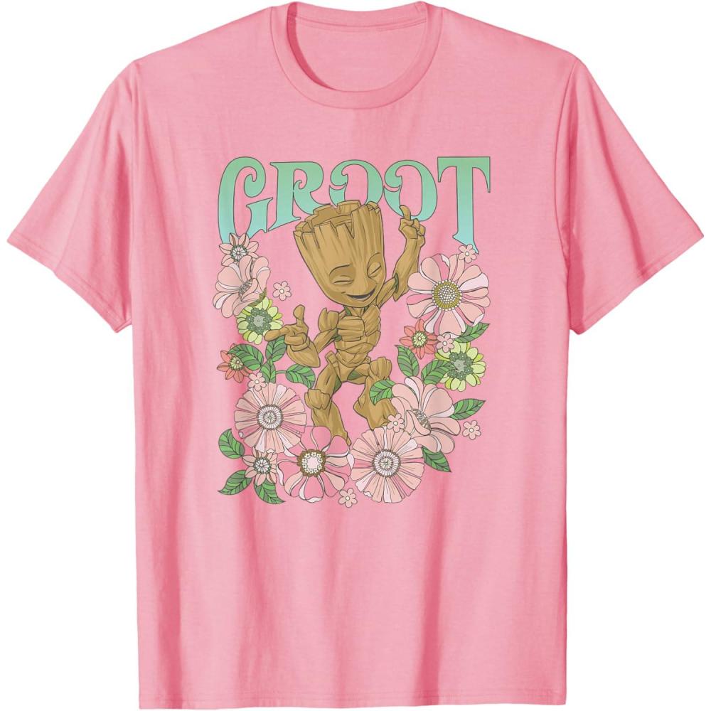 Marvel Guardians Of The Galaxy Groot Floral Dance Poster T-Shirt(Pink)