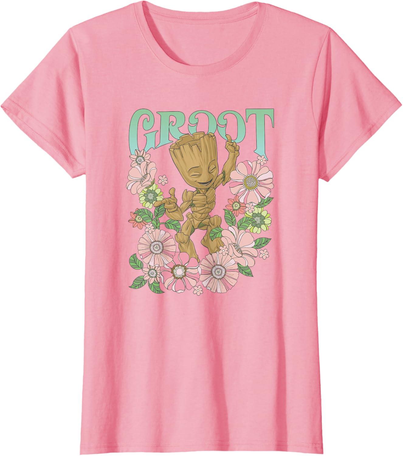 Marvel Guardians Of The Galaxy Groot Floral Dance Poster T-Shirt(Pink Heather)