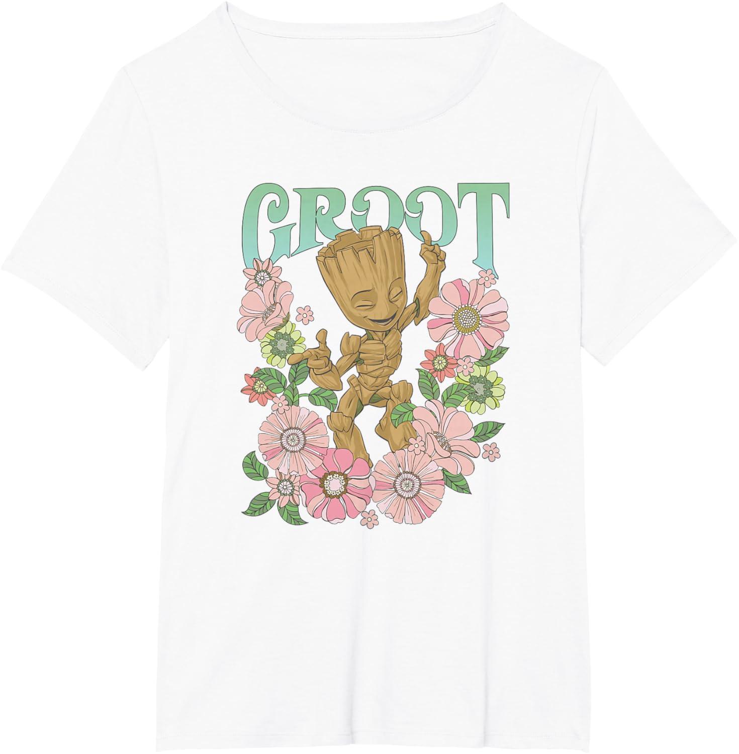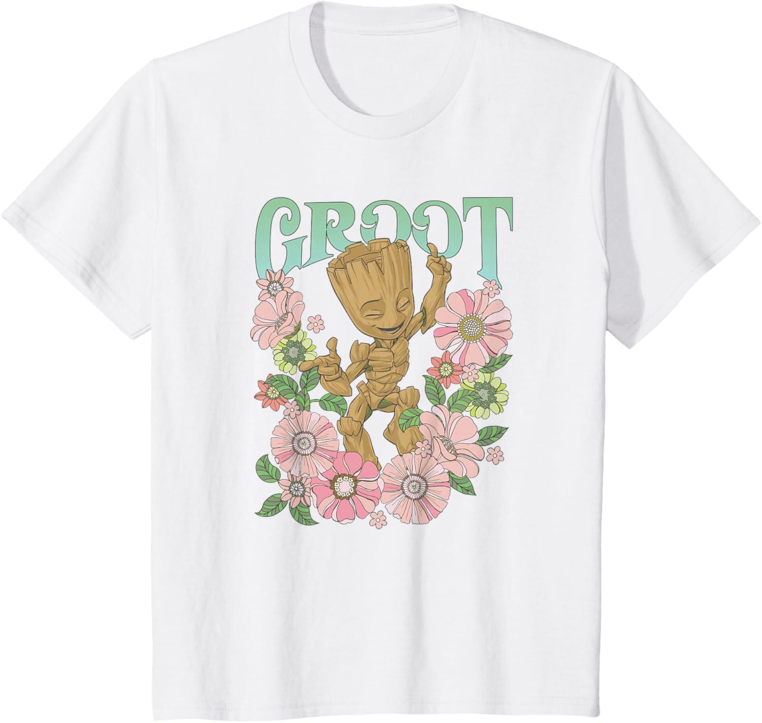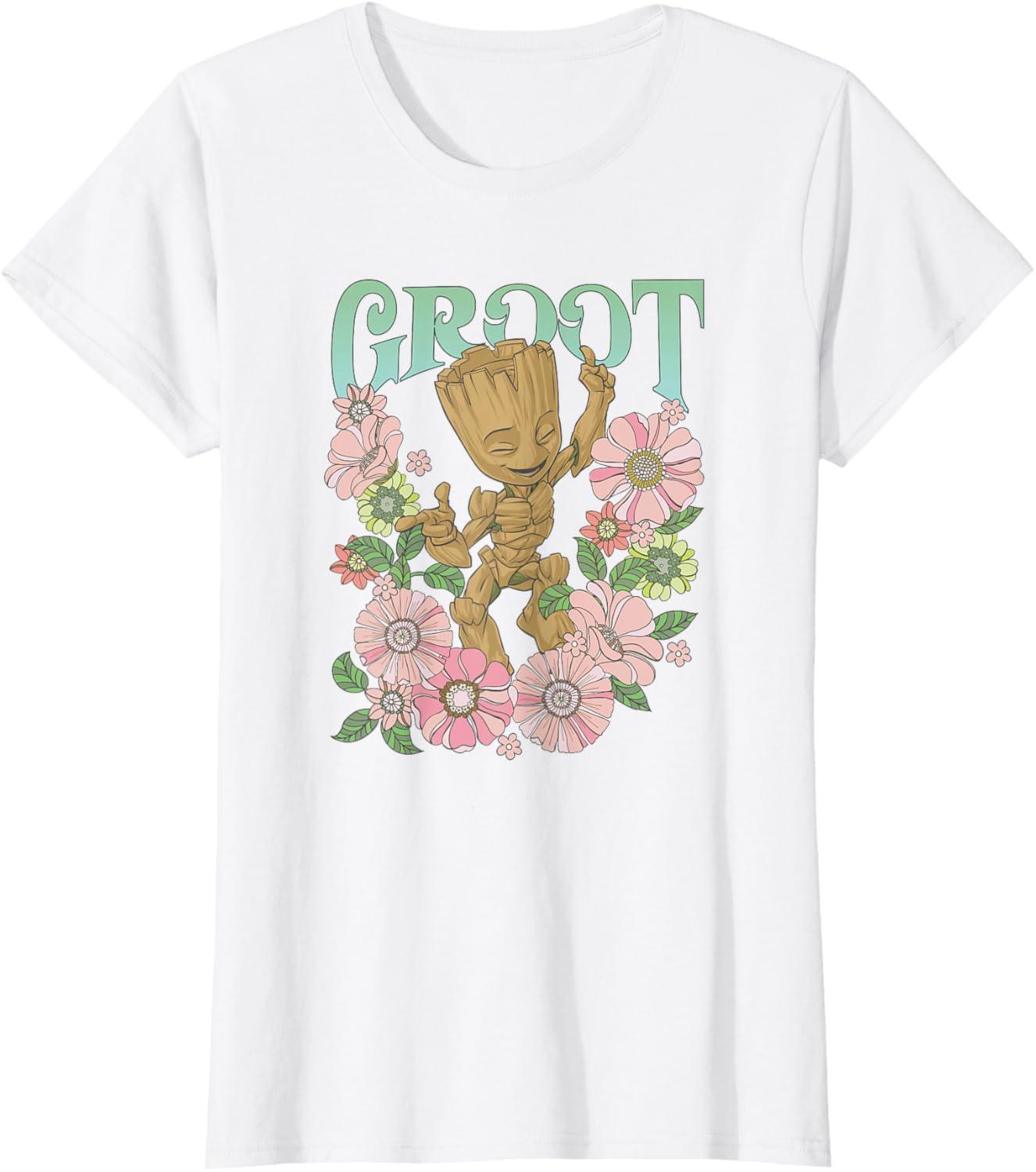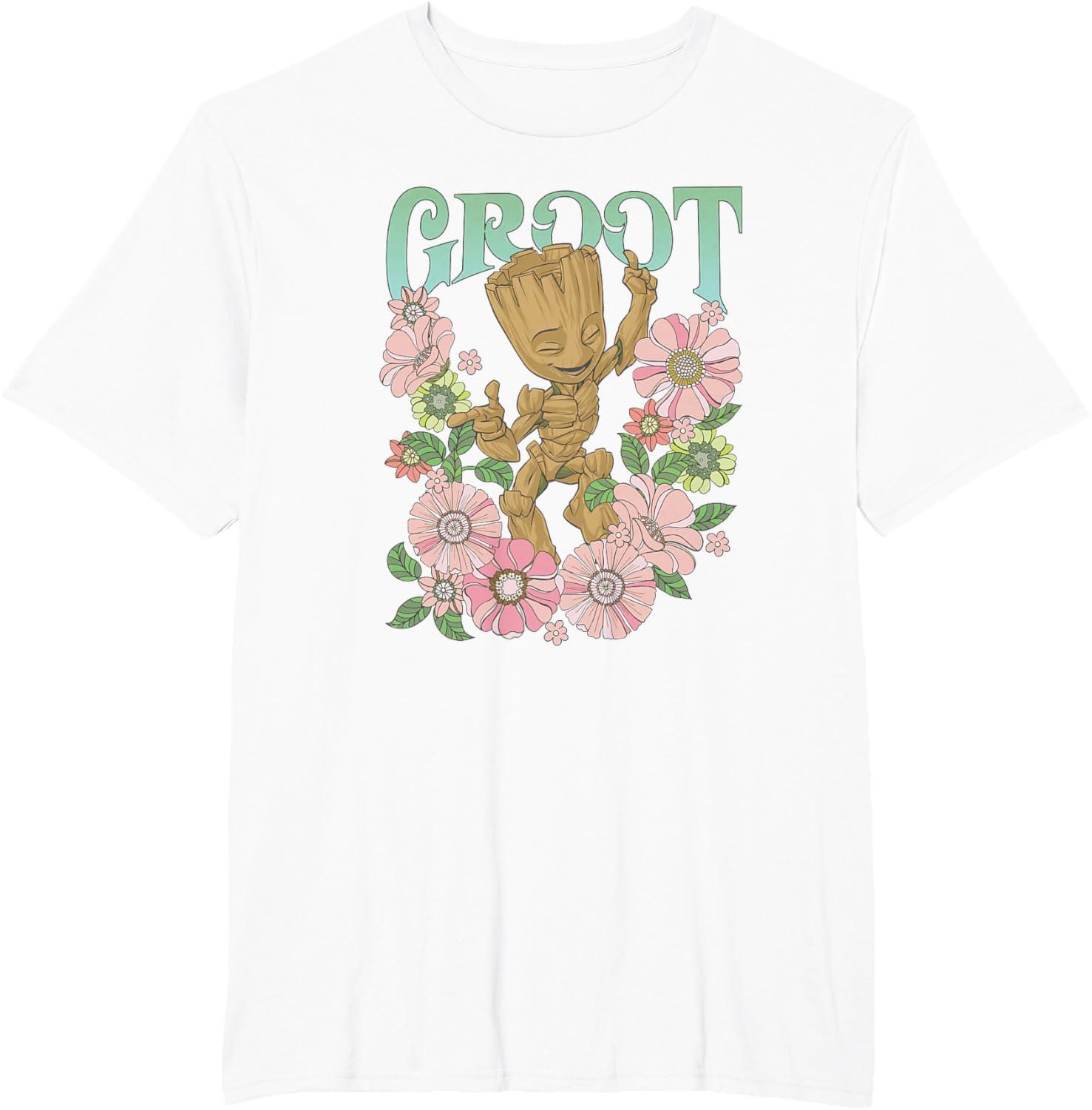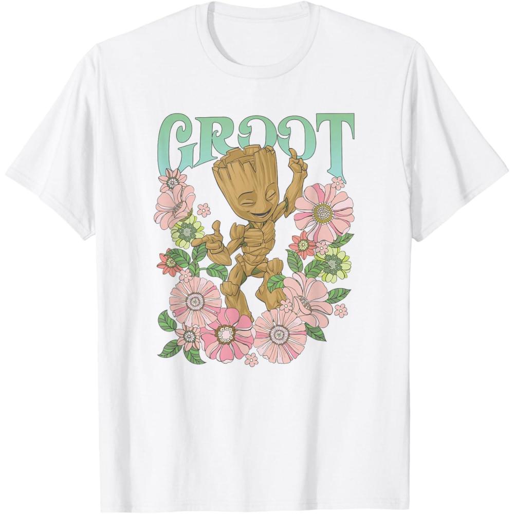 Marvel Guardians Of The Galaxy Groot Floral Dance Poster T-Shirt(White)