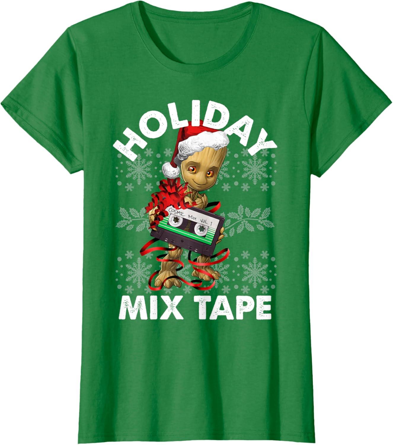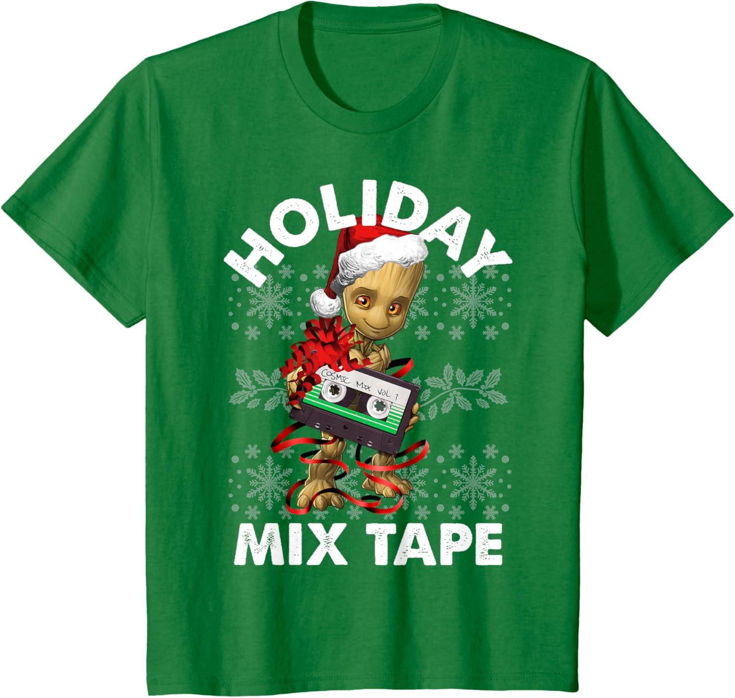 Marvel Guardians Of The Galaxy Groot Mix Tape Christmas T-Shirt(Dark Heather Grey)