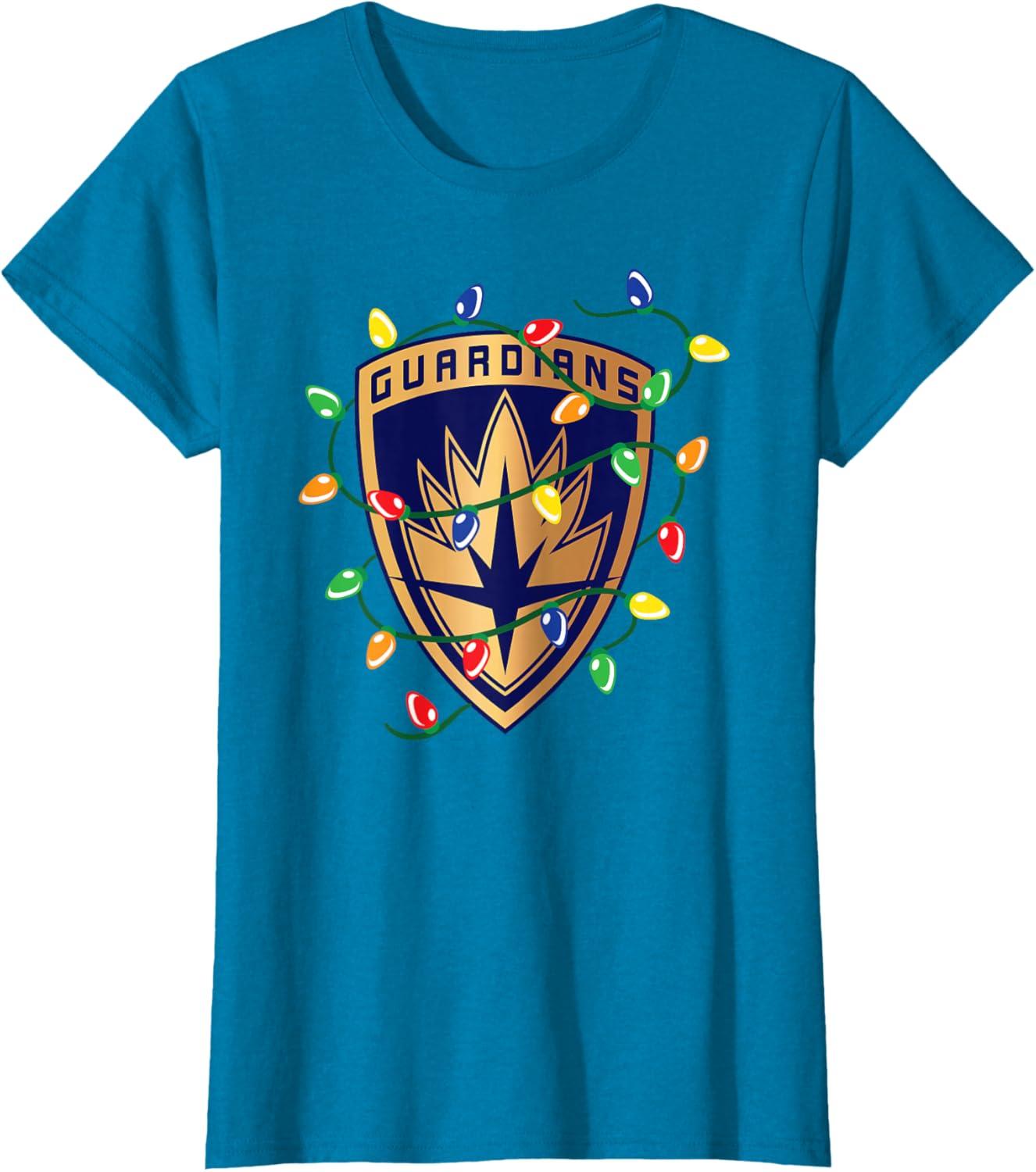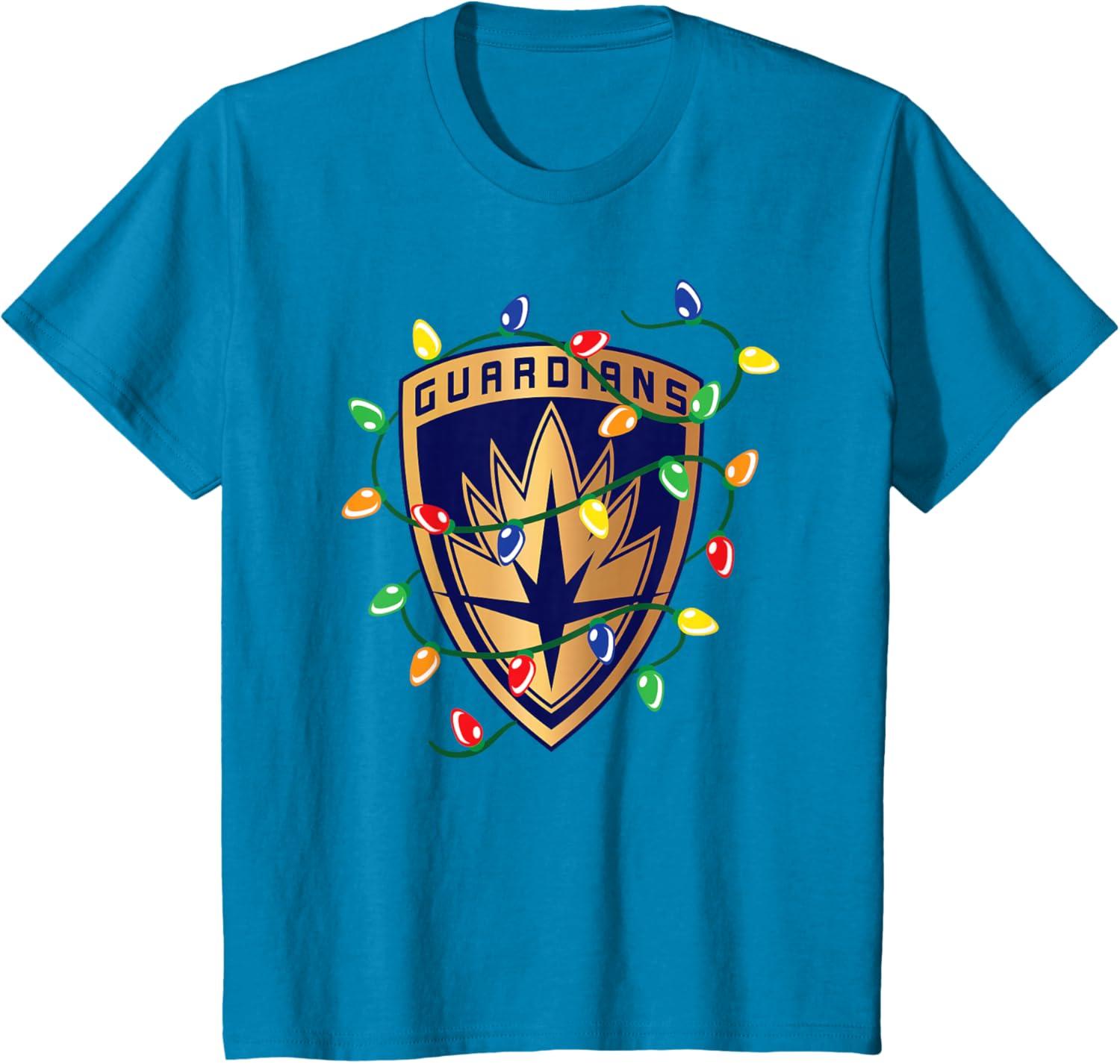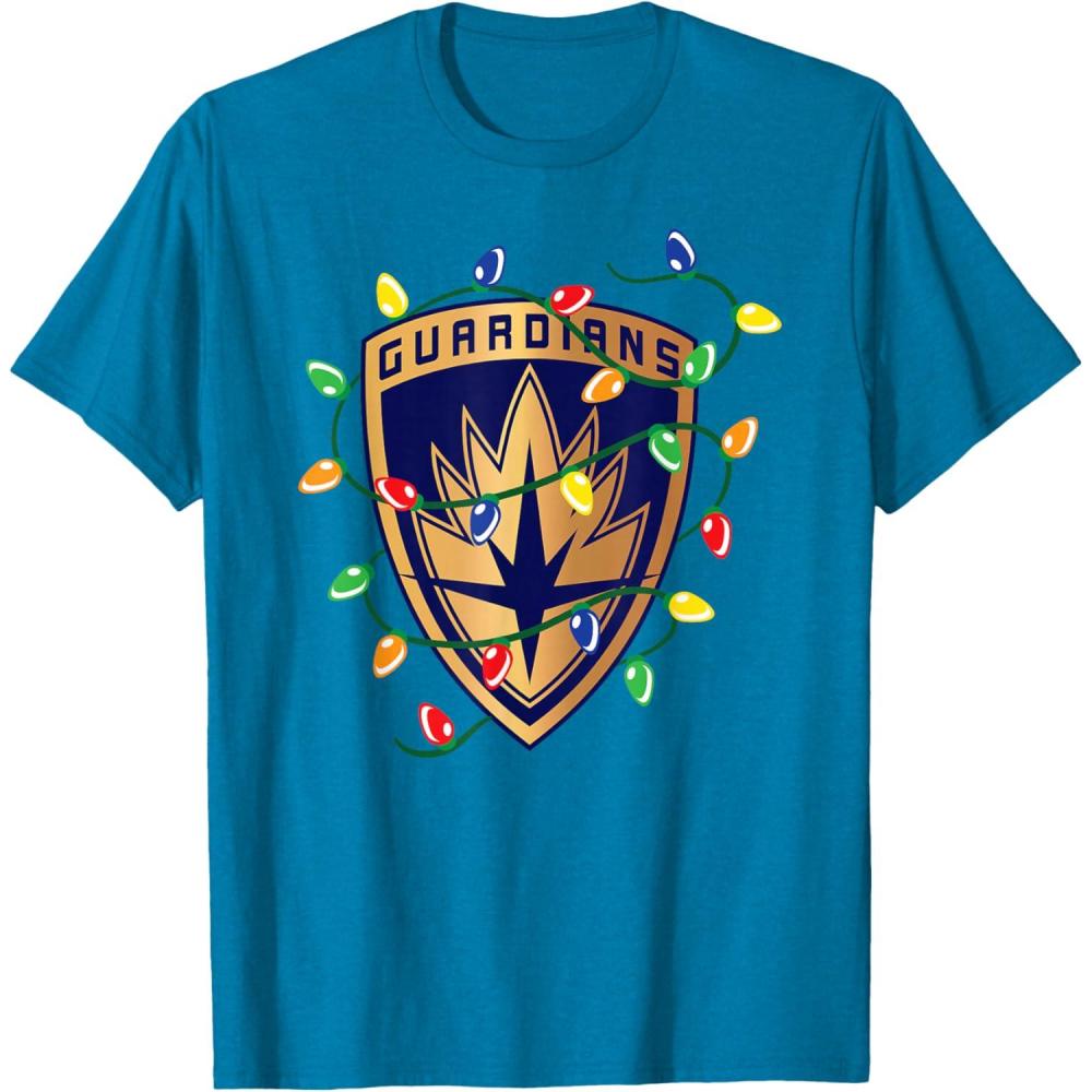 Marvel Guardians of the Galaxy Logo Holiday Christmas Lights T-Shirt(Sapphire Blue)