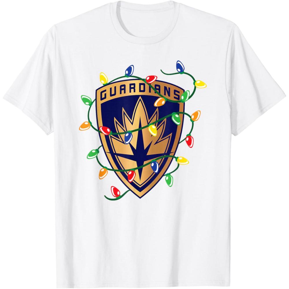 Marvel Guardians of the Galaxy Logo Holiday Christmas Lights T-Shirt(White)