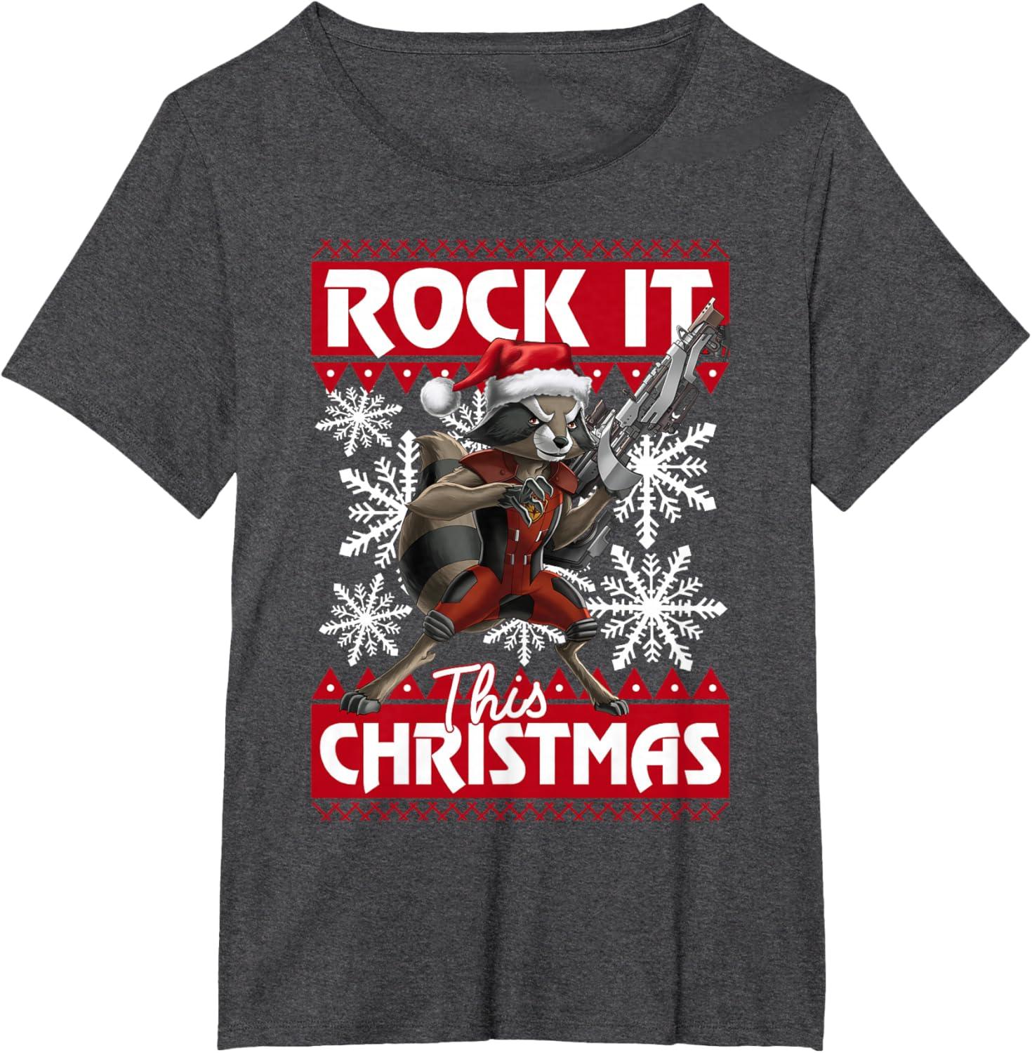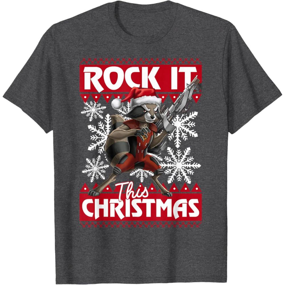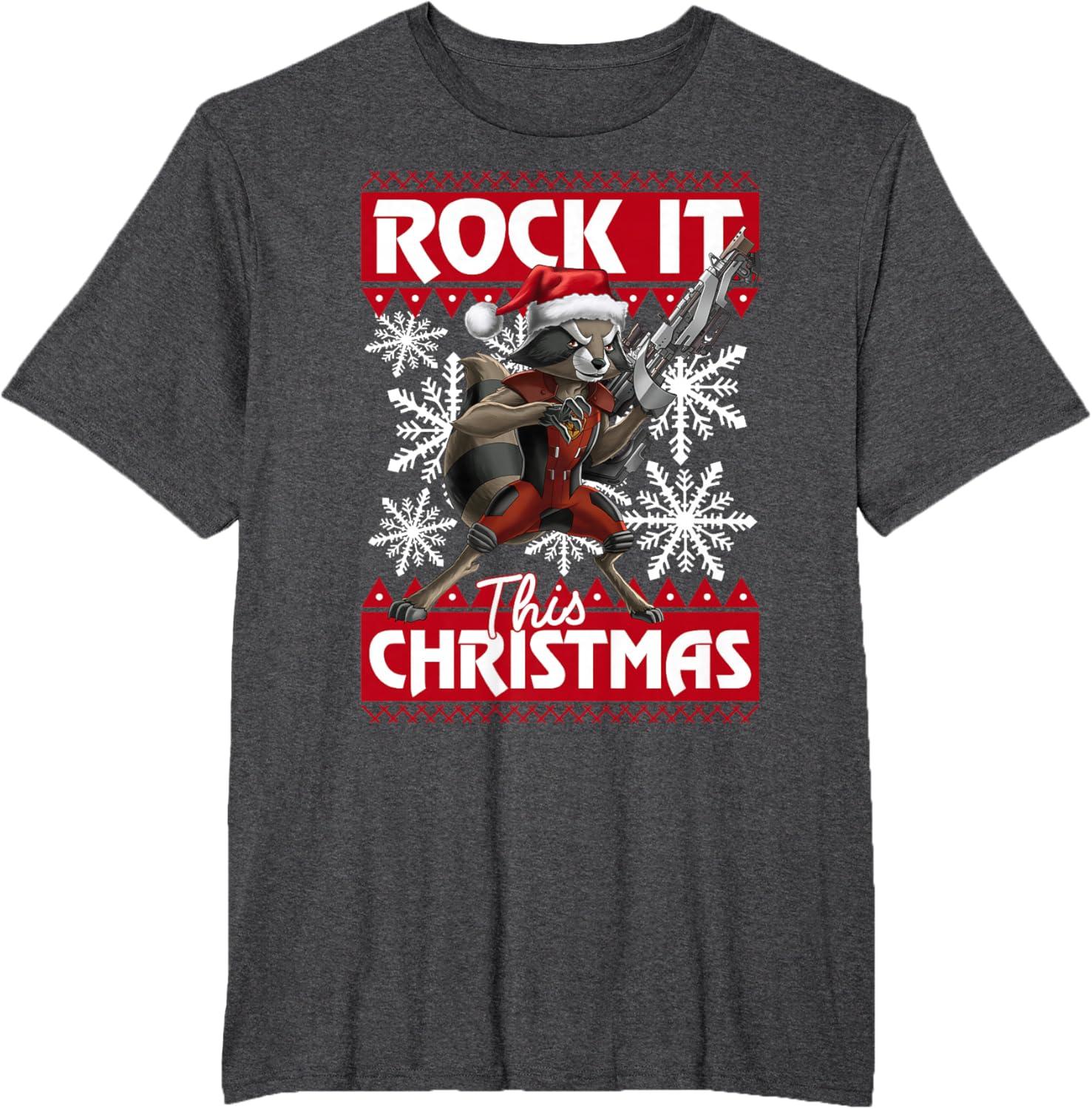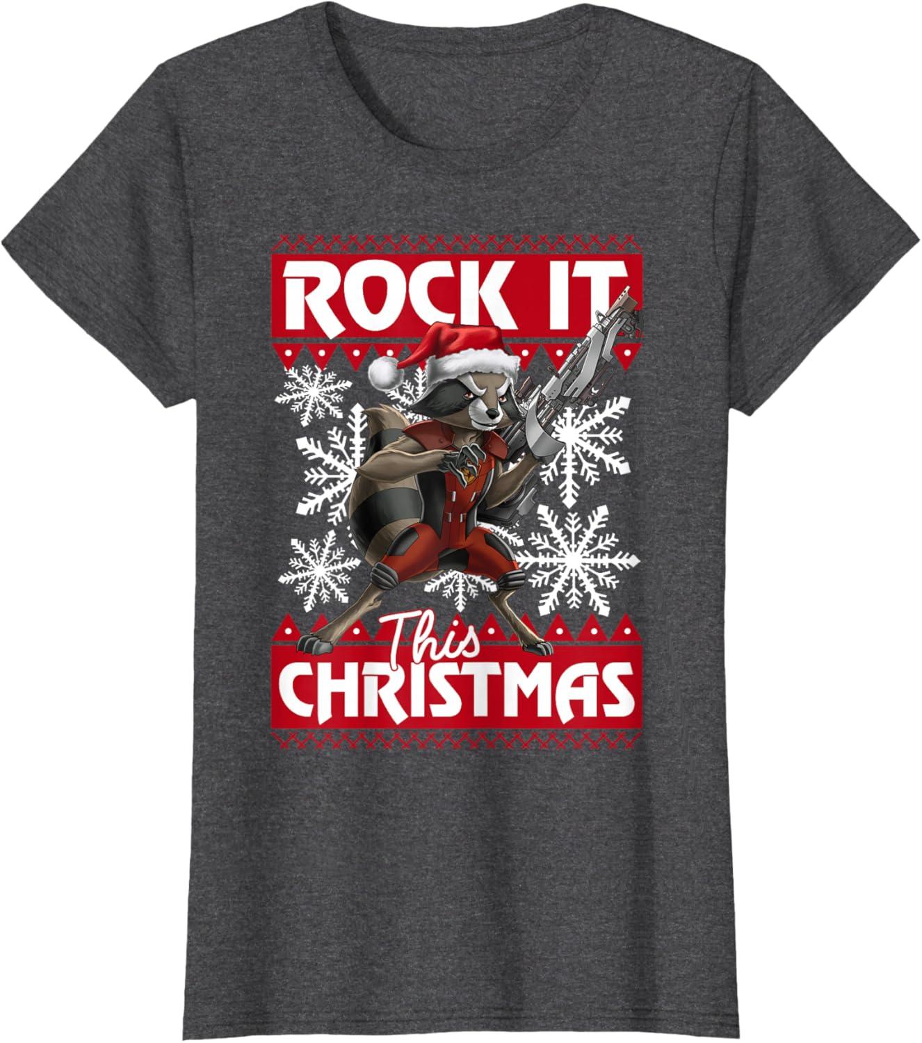 Marvel Guardians Of The Galaxy Rocket Rock It This Christmas T-Shirt(Dark Heather Grey)