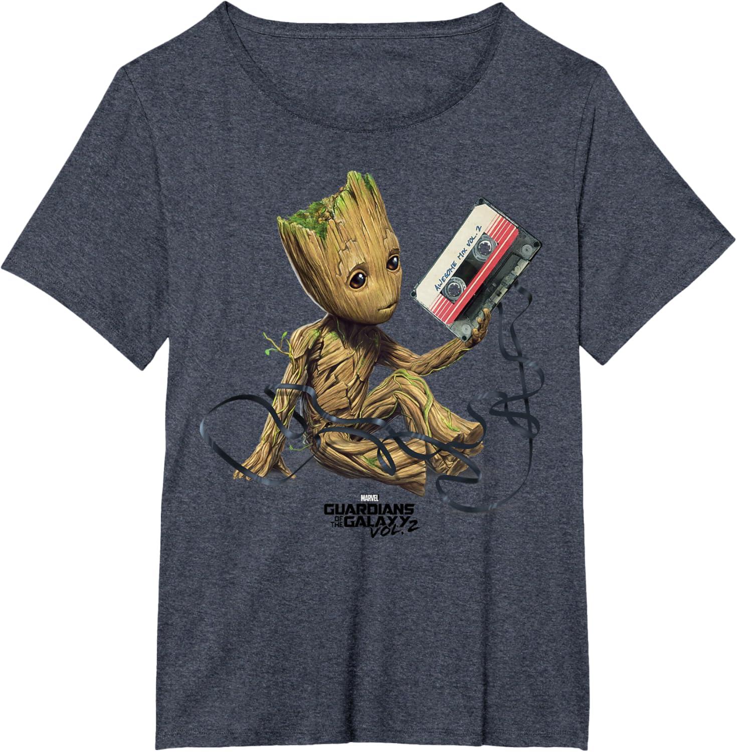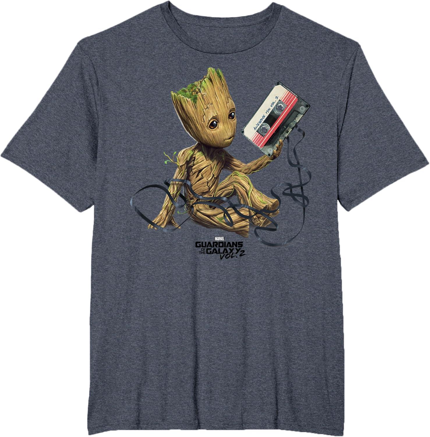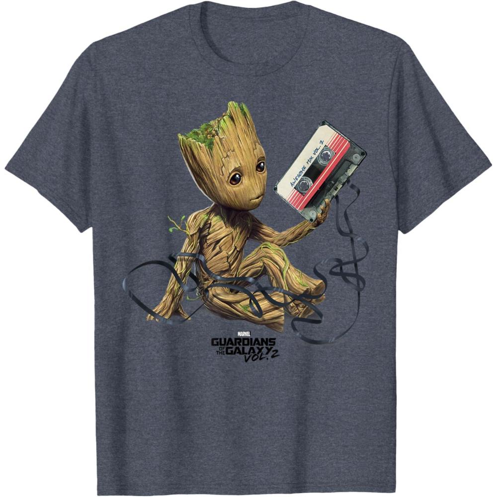 Marvel Guardians Of The Galaxy Vol. 2 Groot Tape Portrait T-Shirt(Heather Blue)