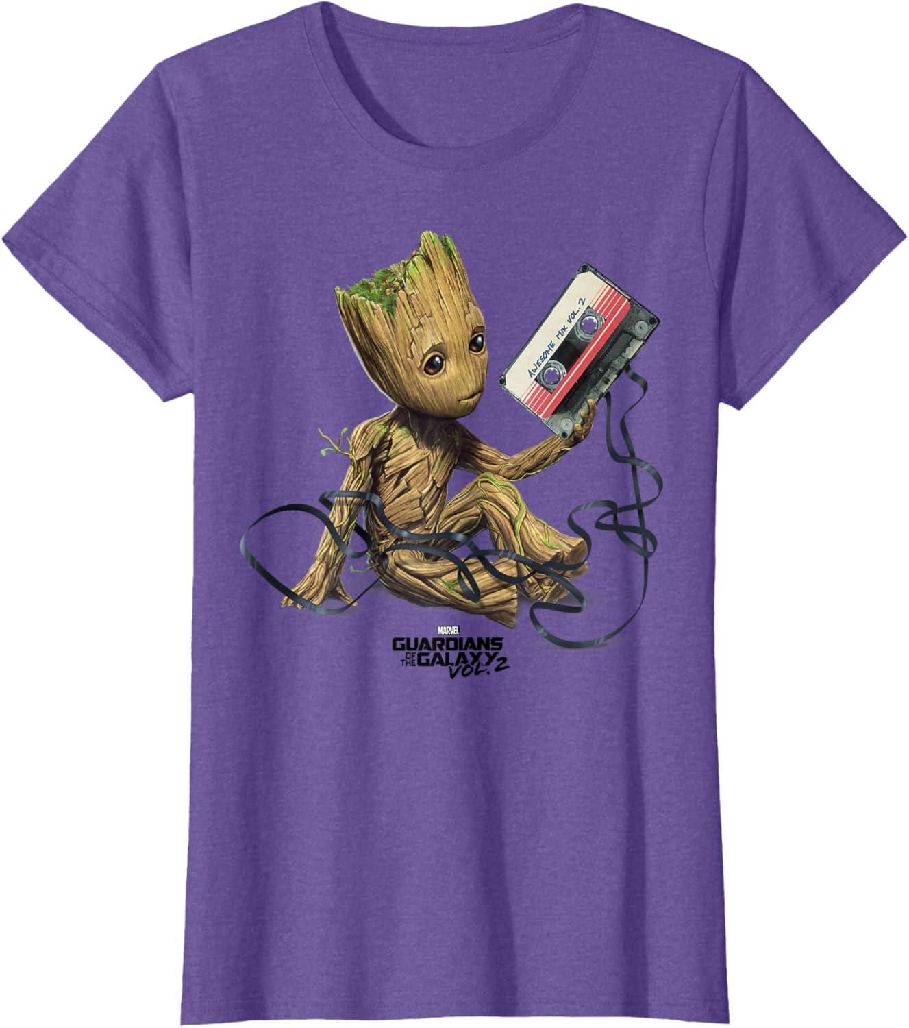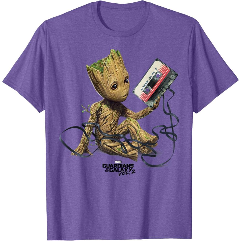 Marvel Guardians Of The Galaxy Vol. 2 Groot Tape Portrait T-Shirt(Purple Heather)