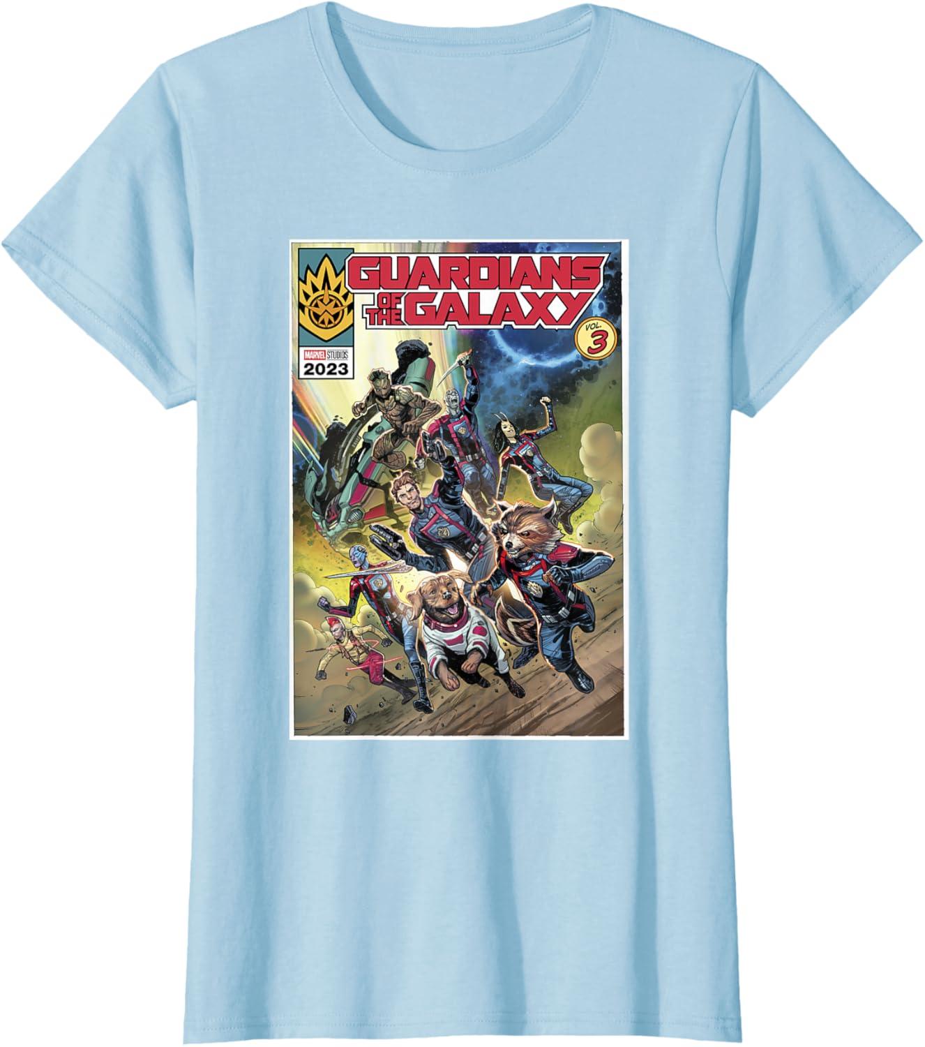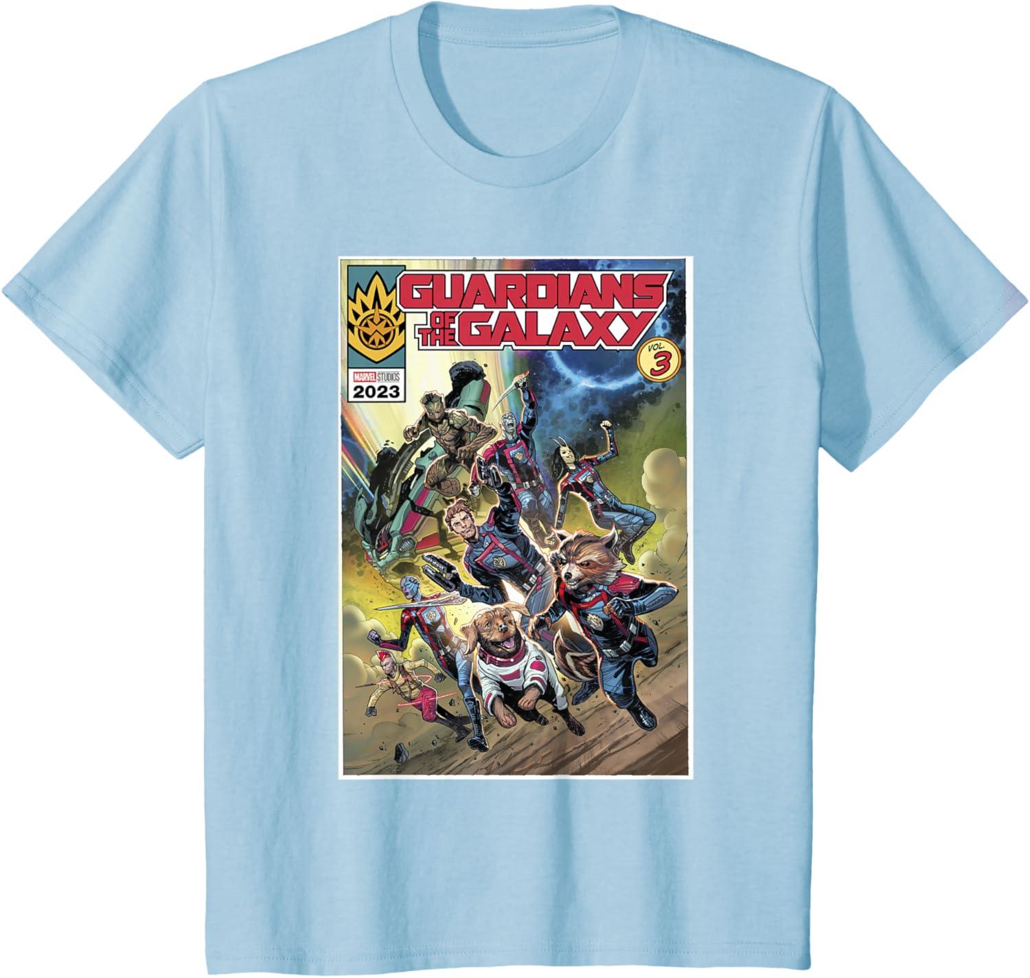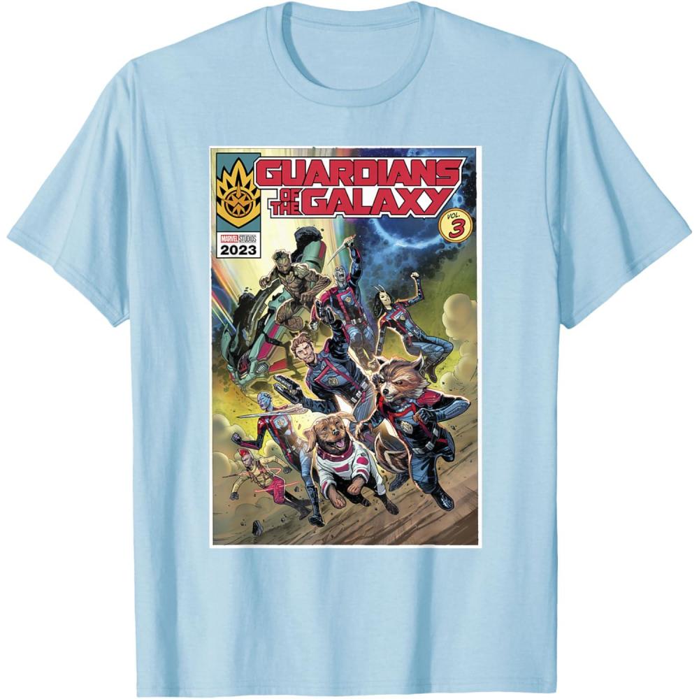 Marvel Guardians of the Galaxy Vol. 3 Cosmic Comic Poster T-Shirt(Baby Blue)