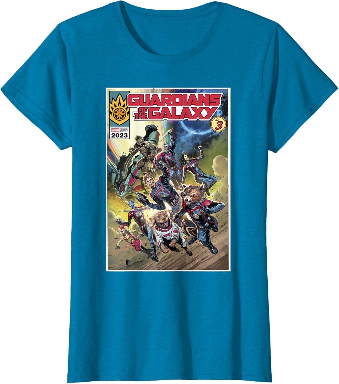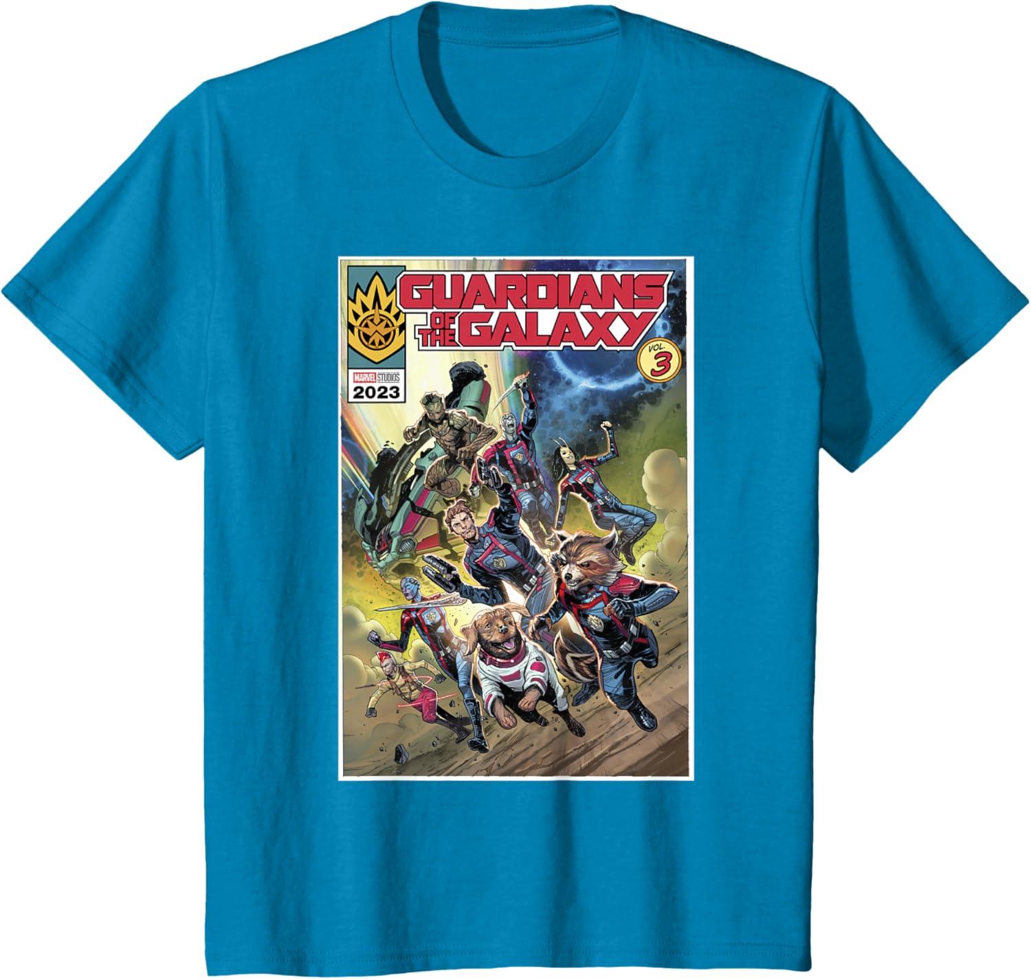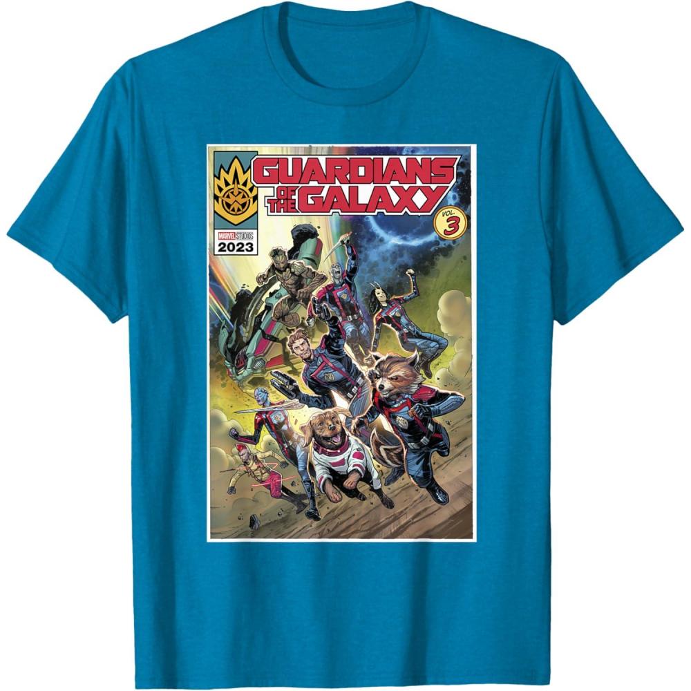 Marvel Guardians of the Galaxy Vol. 3 Cosmic Comic Poster T-Shirt(Sapphire Blue)