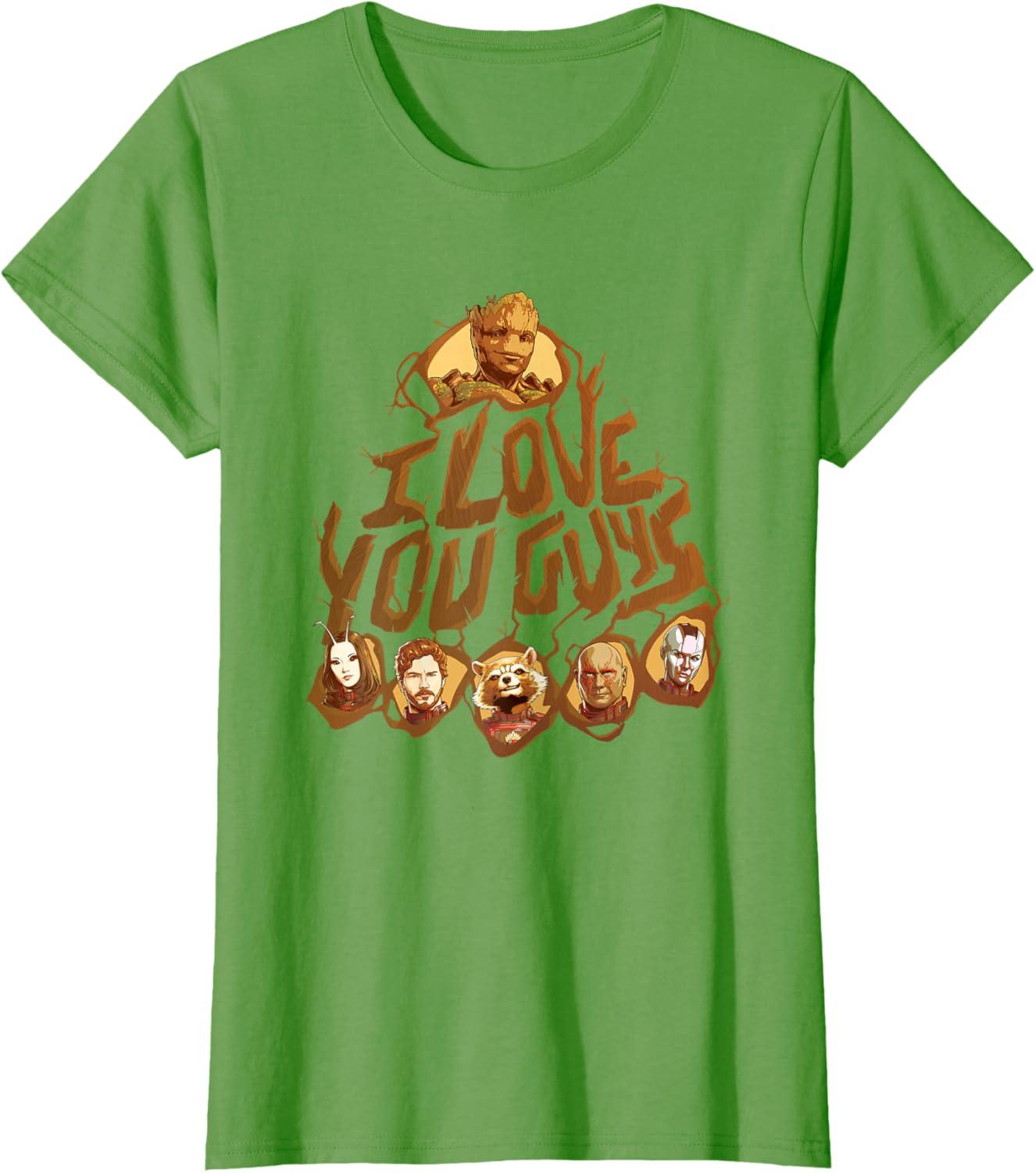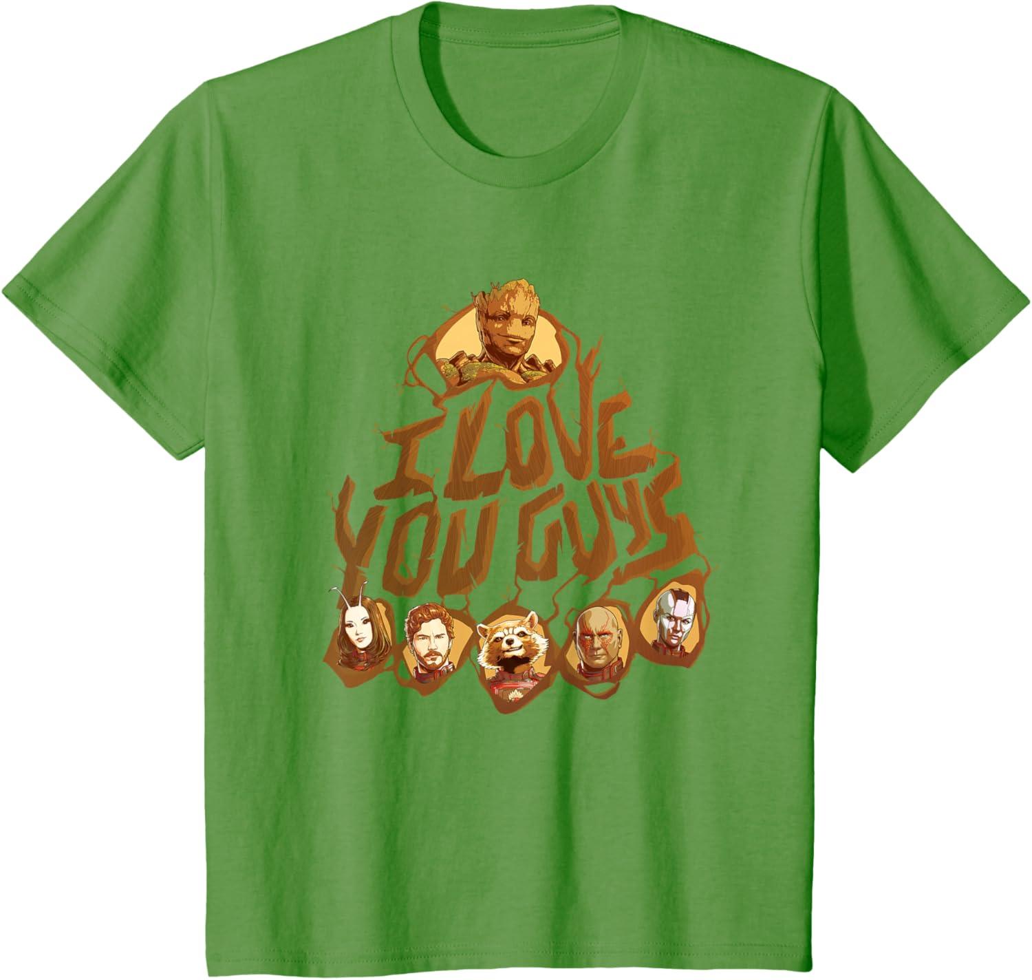 “I Love You Guys.” When you spend enough time with Groot, you begin to understand his words. From one of the most memorable scenes in Marvel Studios’ blockbuster “Guardians of the Galaxy Volume 3” movie sequel, this official tee or hoodie features Groot at the top with teammates Mantis, Peter Quill (the legendary Star-Lord), Rocket Raccoon, Drax the Destroyer, and Nebula below, joined together by Groot’s epic quote from the end of the movie. A great gift for a Groot, Guardians of the Galaxy, or Marvel Cinematic Universe (MCU) fan. Available in youth and adult sizes. Find it in a t-shirt, premium t-shirt, tank top, v-neck, long sleeve tee, hoodie, and sweatshirt.