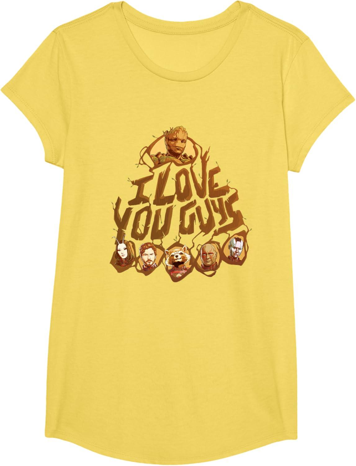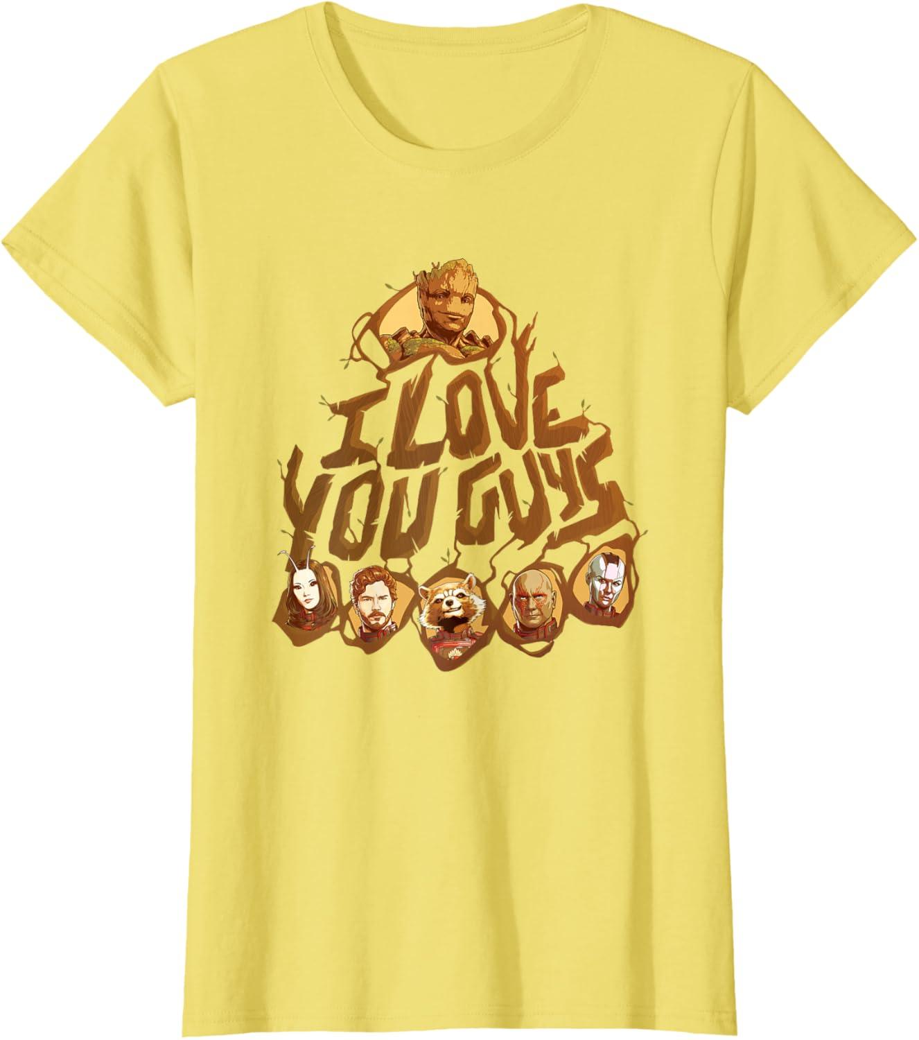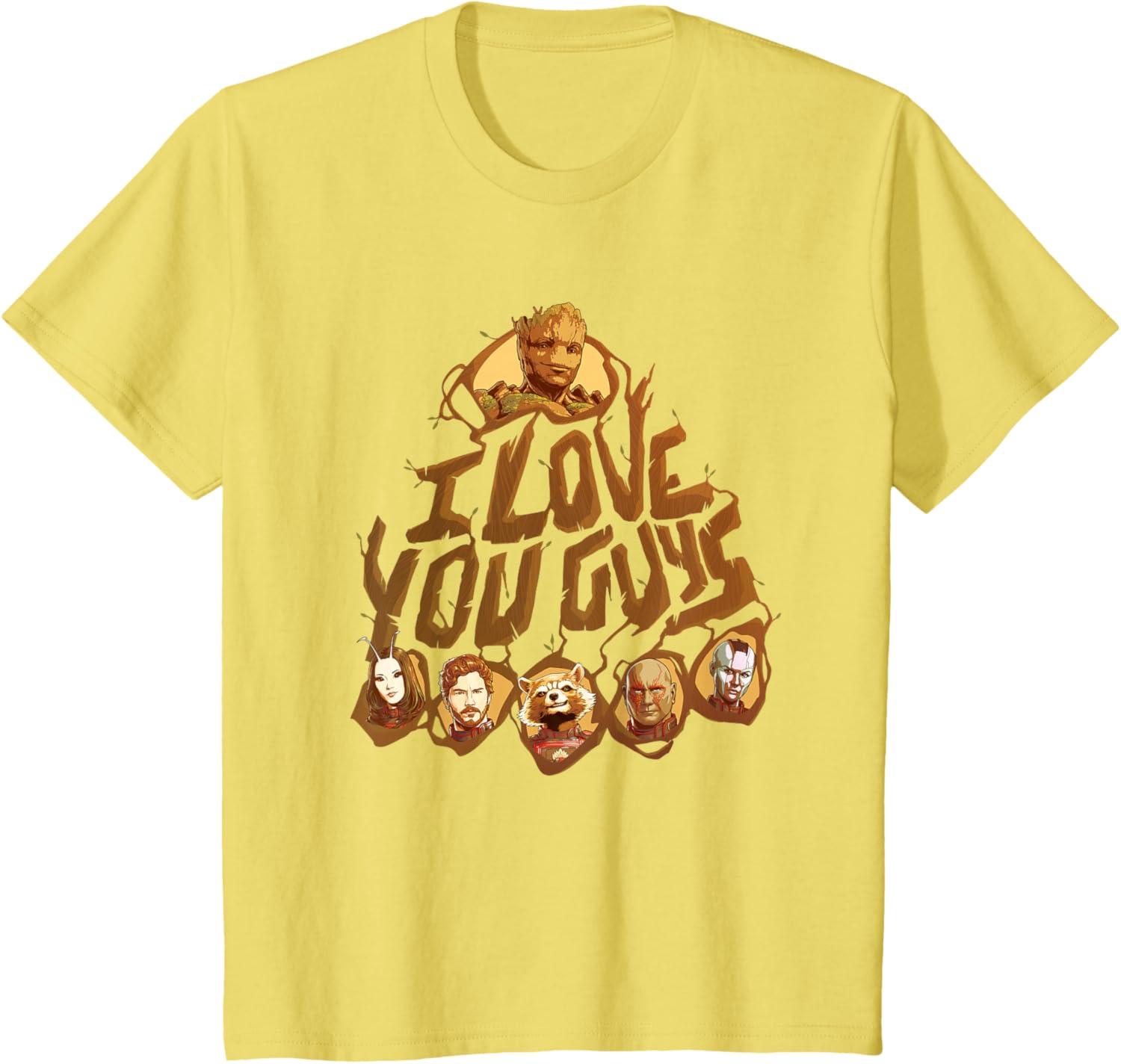Marvel Guardians of the Galaxy Vol. 3 I Love You Guys Groot T-Shirt(Lemon Yellow)