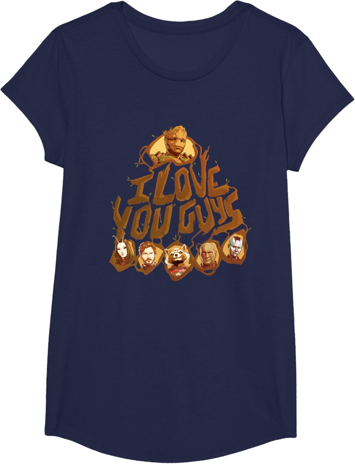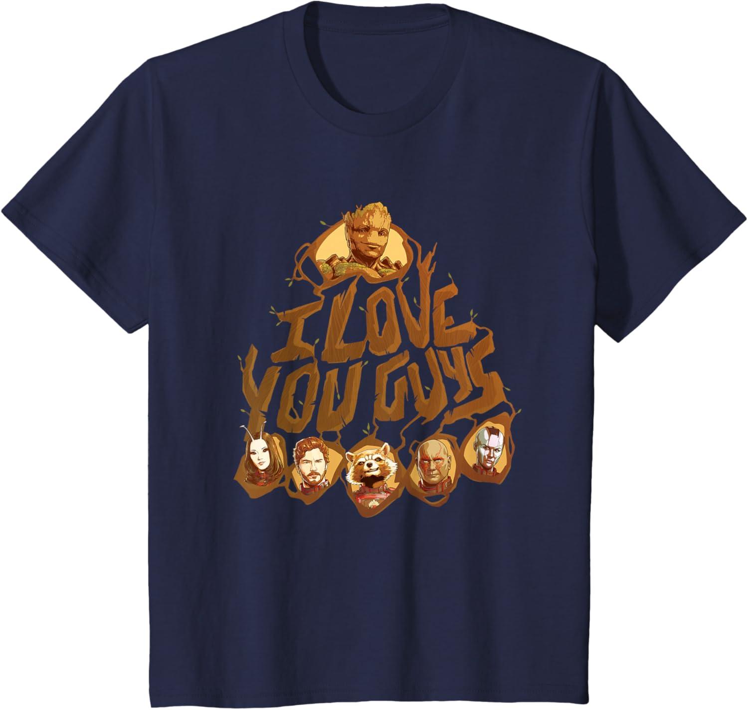 “I Love You Guys.” When you spend enough time with Groot, you begin to understand his words. From one of the most memorable scenes in Marvel Studios’ blockbuster “Guardians of the Galaxy Volume 3” movie sequel, this official tee or hoodie features Groot at the top with teammates Mantis, Peter Quill (the legendary Star-Lord), Rocket Raccoon, Drax the Destroyer, and Nebula below, joined together by Groot’s epic quote from the end of the movie. A great gift for a Groot, Guardians of the Galaxy, or Marvel Cinematic Universe (MCU) fan. Available in youth and adult sizes. Find it in a t-shirt, premium t-shirt, tank top, v-neck, long sleeve tee, hoodie, and sweatshirt.