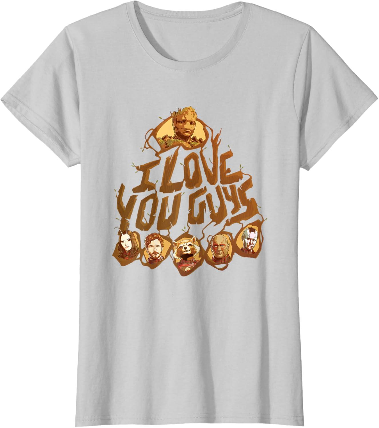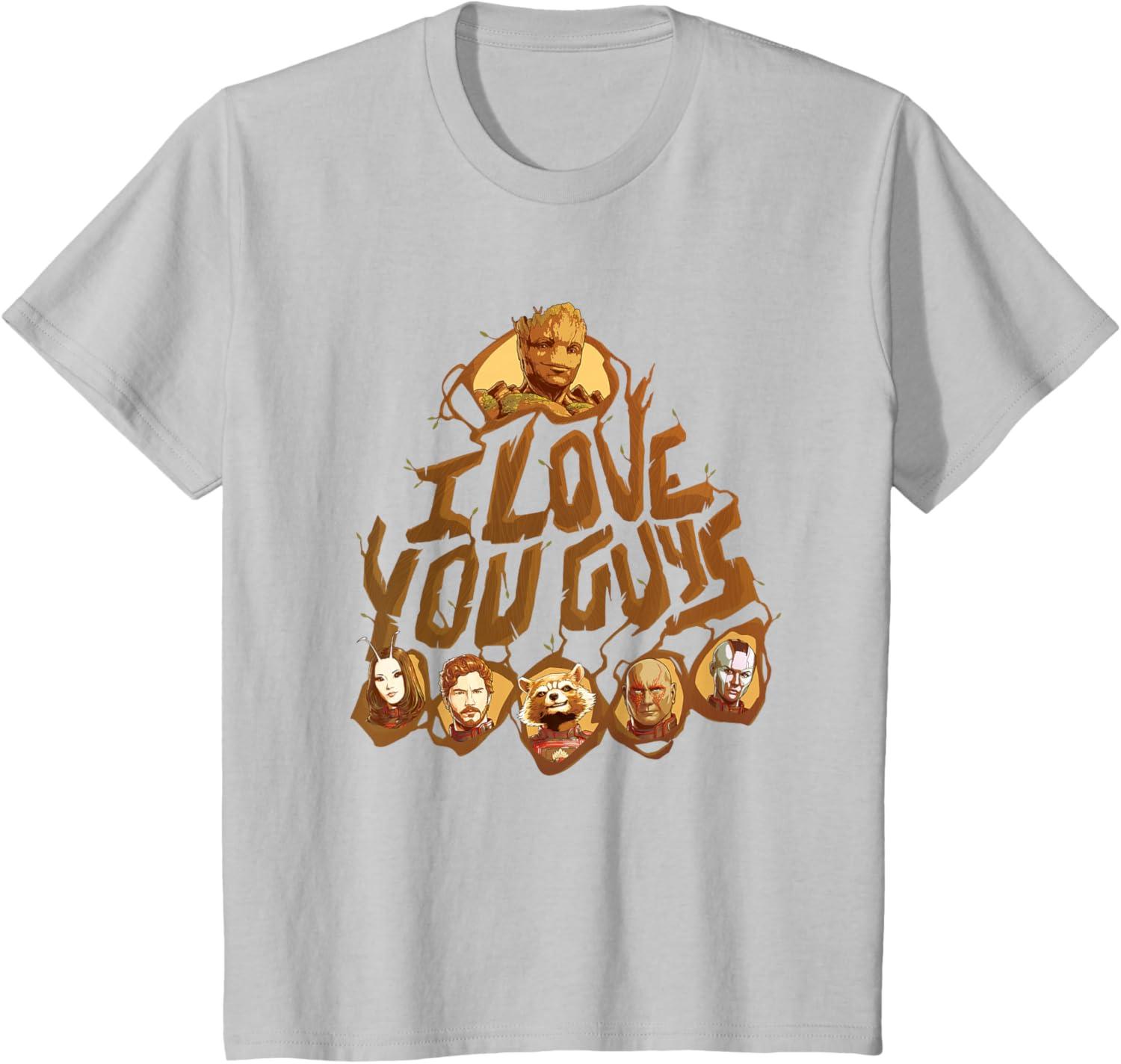 “I Love You Guys.” When you spend enough time with Groot, you begin to understand his words. From one of the most memorable scenes in Marvel Studios’ blockbuster “Guardians of the Galaxy Volume 3” movie sequel, this official tee or hoodie features Groot at the top with teammates Mantis, Peter Quill (the legendary Star-Lord), Rocket Raccoon, Drax the Destroyer, and Nebula below, joined together by Groot’s epic quote from the end of the movie. A great gift for a Groot, Guardians of the Galaxy, or Marvel Cinematic Universe (MCU) fan. Available in youth and adult sizes. Find it in a t-shirt, premium t-shirt, tank top, v-neck, long sleeve tee, hoodie, and sweatshirt.