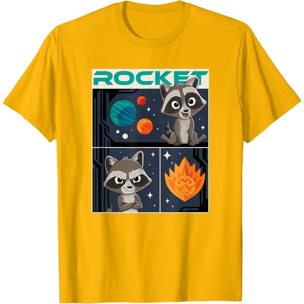 Marvel Guardians of the Galaxy Volume 3 Baby Rocket Panels T-Shirt(Golden Yellow)