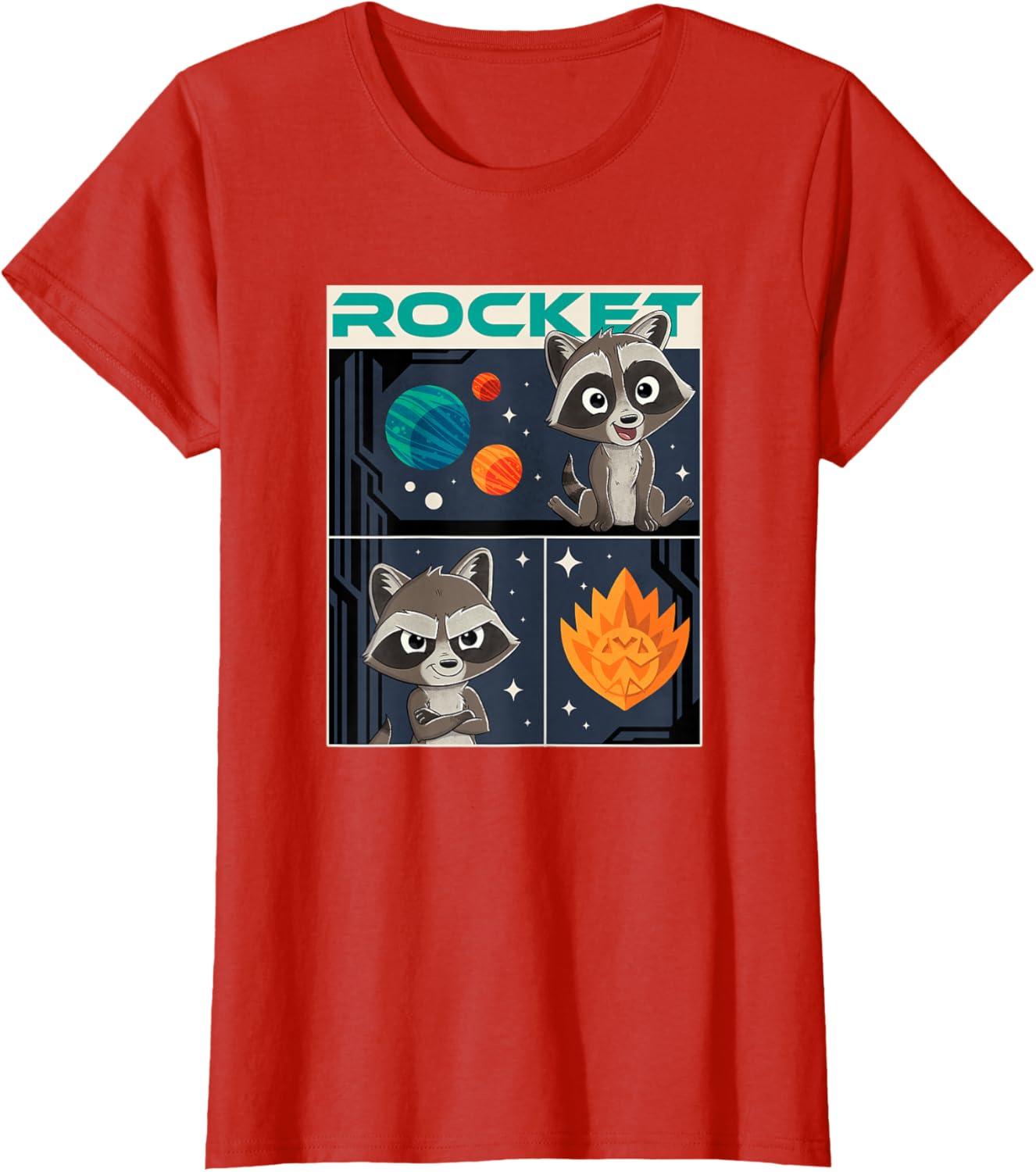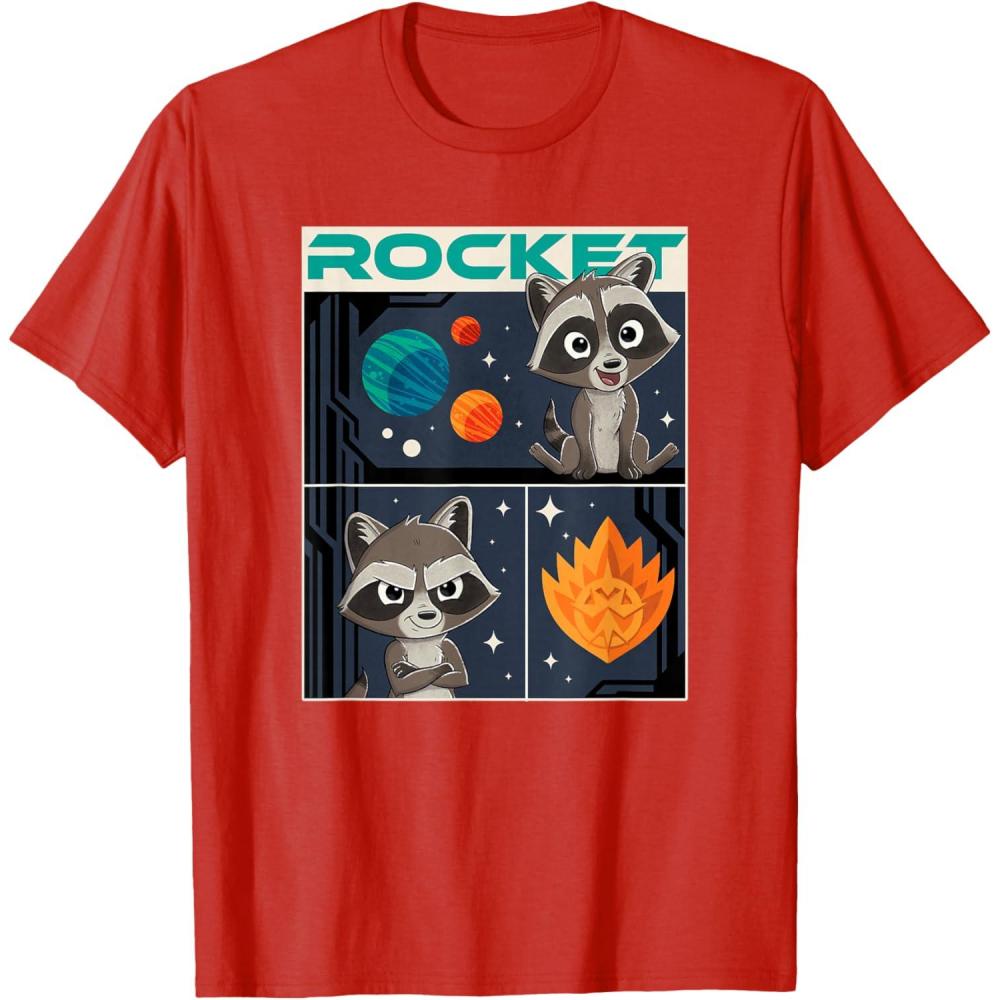 Marvel Guardians of the Galaxy Volume 3 Baby Rocket Panels T-Shirt(Red)